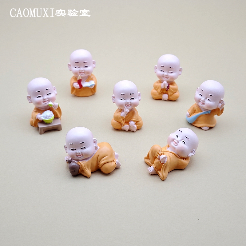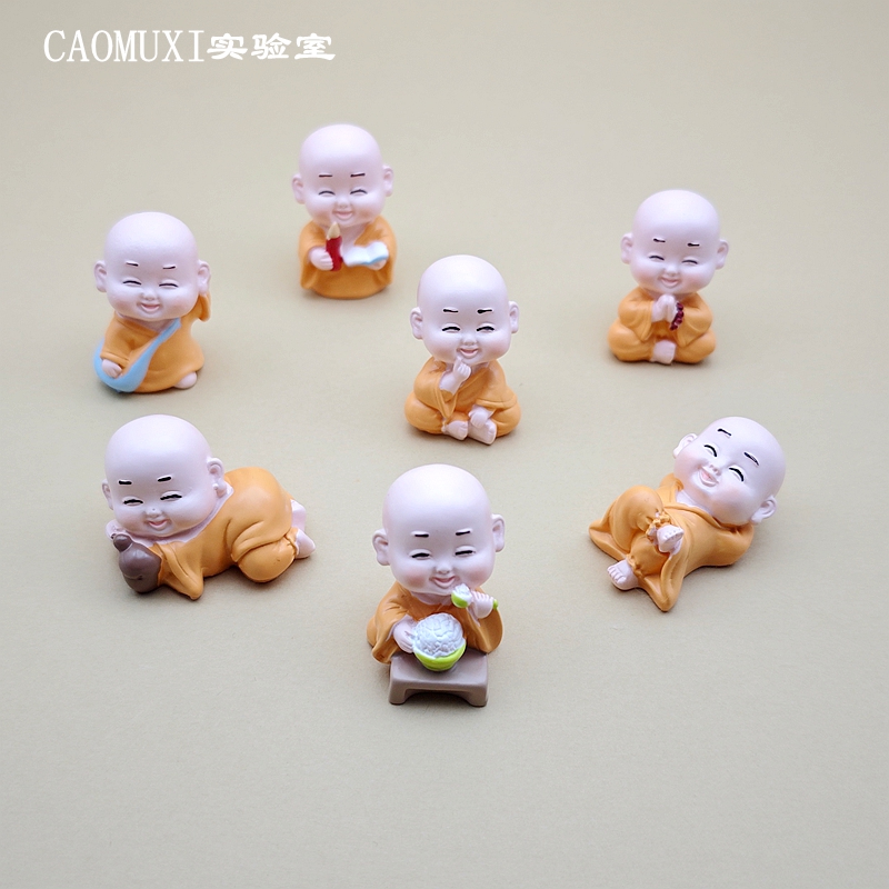 禅意小和尚树脂微缩模型创意桌面微景观玩偶沙弥公仔造景茶桌摆件
