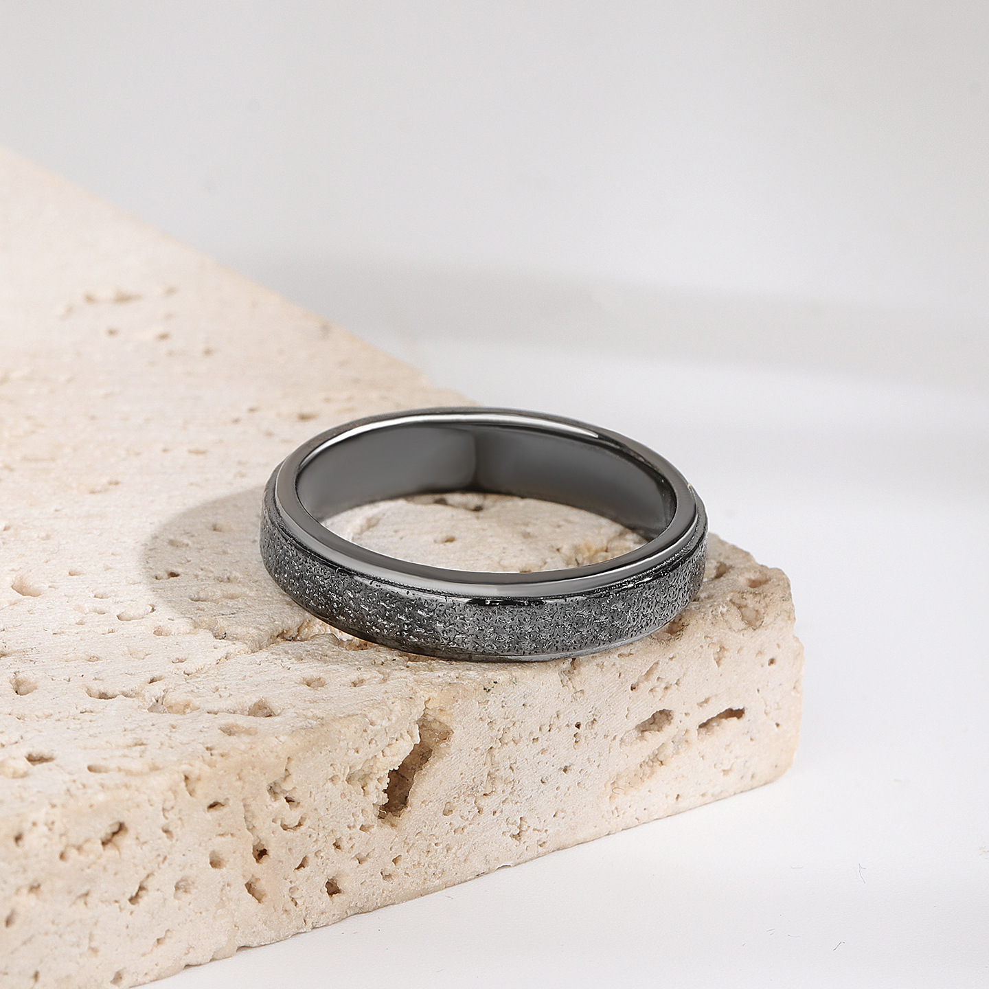 s925纯银黑色磨砂素圈戒指男生高级感潮流男款指环个性时尚食指