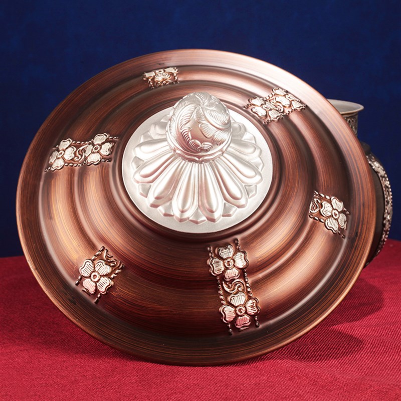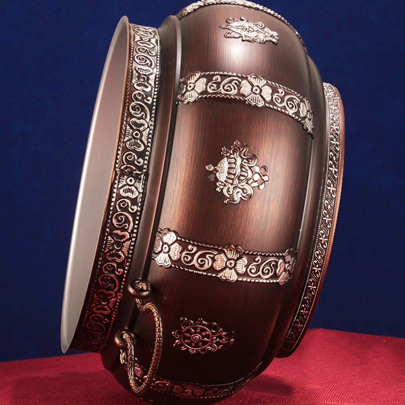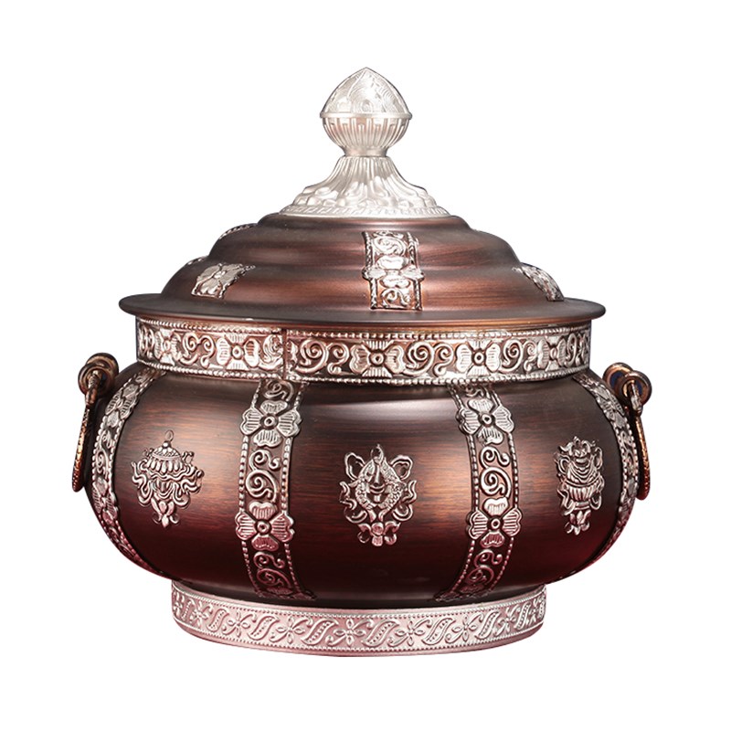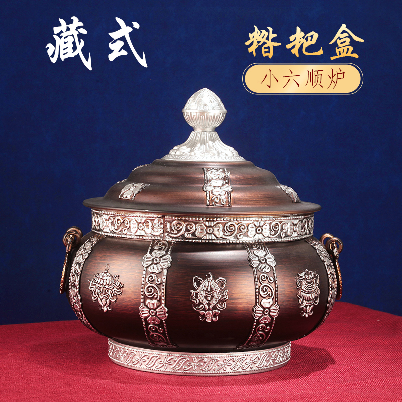 藏式民族风合金糌粑盒新款雕刻红银F双色果盘收纳罐六小顺家用摆