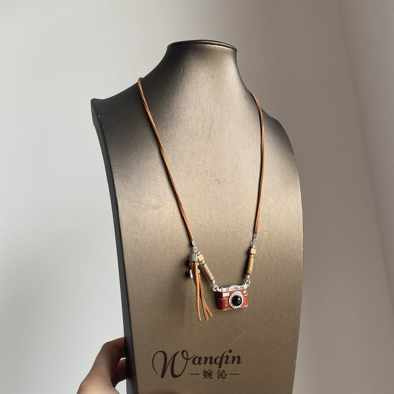 复古美拉德棕色小熊相机项链小众设计感个性独特高级感锁骨链颈链