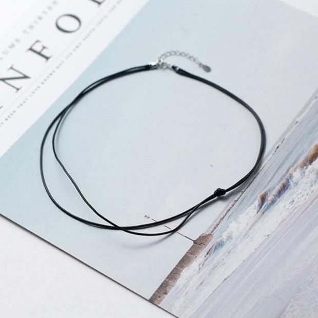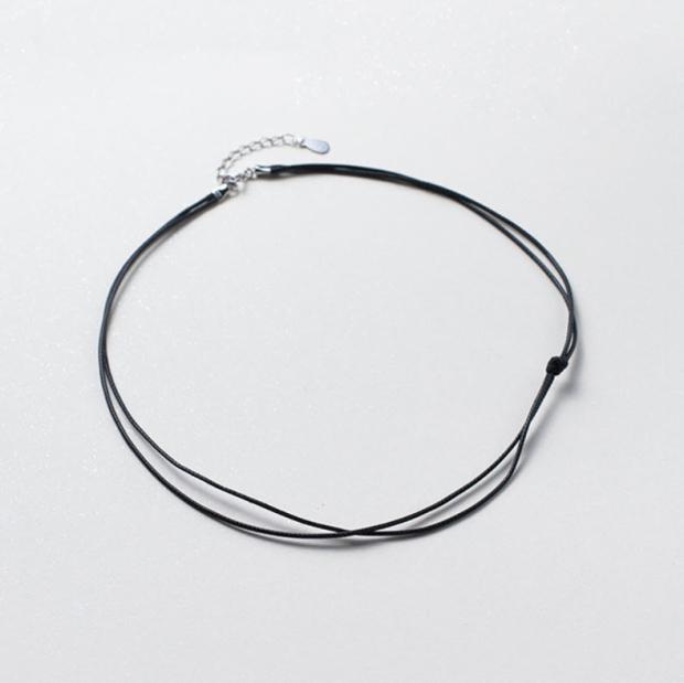 双层黑色绳结925纯银项链女男日韩气质时尚简约颈绳个性饰品包邮
