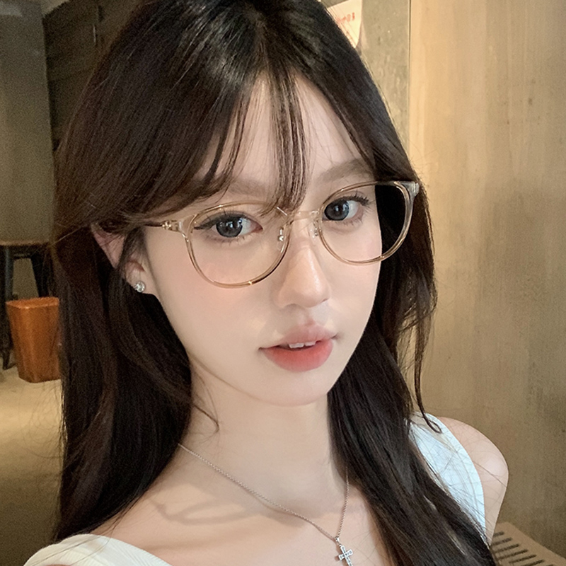 韩国超轻透感近视眼镜框女可配高度数小框纯钛茶色圆脸百搭氛围镜