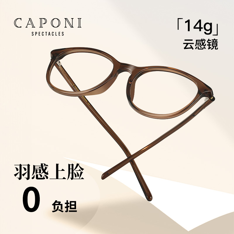 CAPONI茶色素颜眼镜框小香风高级感镜架猫眼眼镜女近视防蓝光3282
