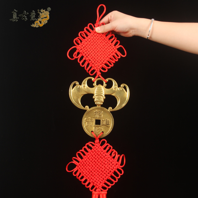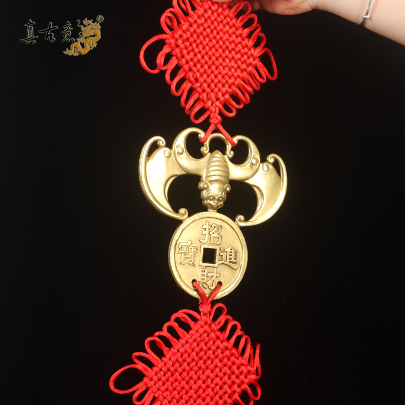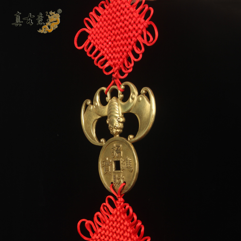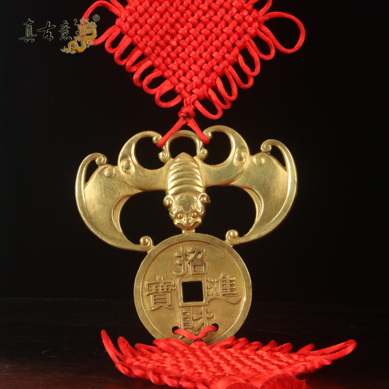 真古意黄铜蝙蝠挂件吊金钱福鼠客厅横粱汽车挂件福鼠富贵运化横粱