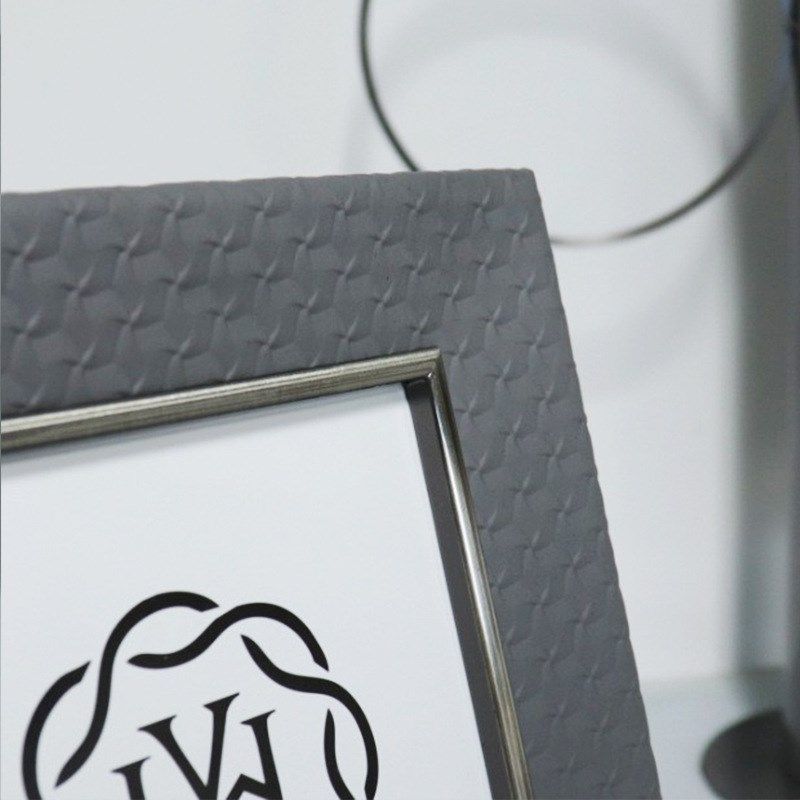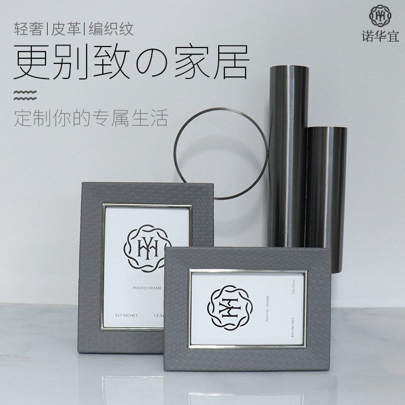 创意欧式皮革玻璃相框灰色高档边框简约画框家居装饰品桌面摆件