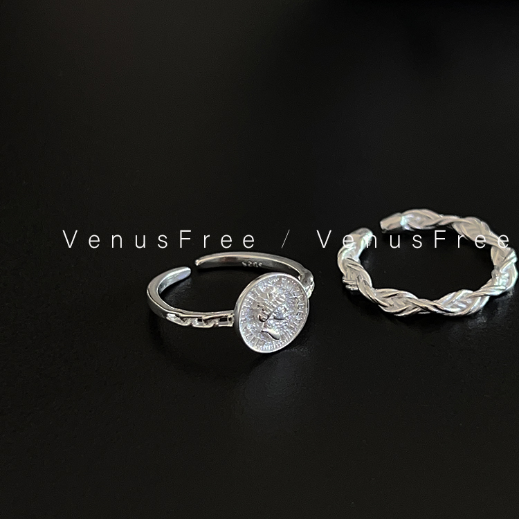 复古2选 韩国925纯银麻花/人头Vintage素银开口戒指叠戴简约冷淡