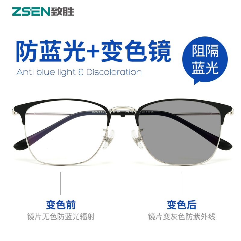 半框眼镜近视男可配近视配近视眼镜男防蓝光辐射有度数变色平光潮