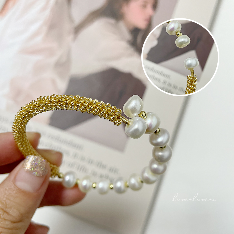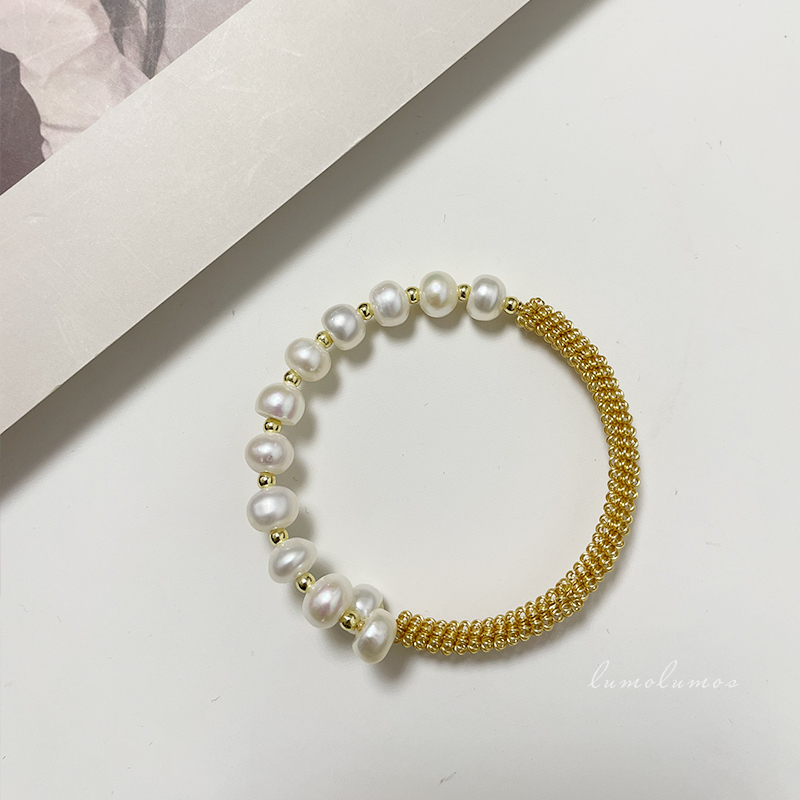 金色麦穗天然淡水珍珠手链手工DIY日常百搭活动开口圈可调节