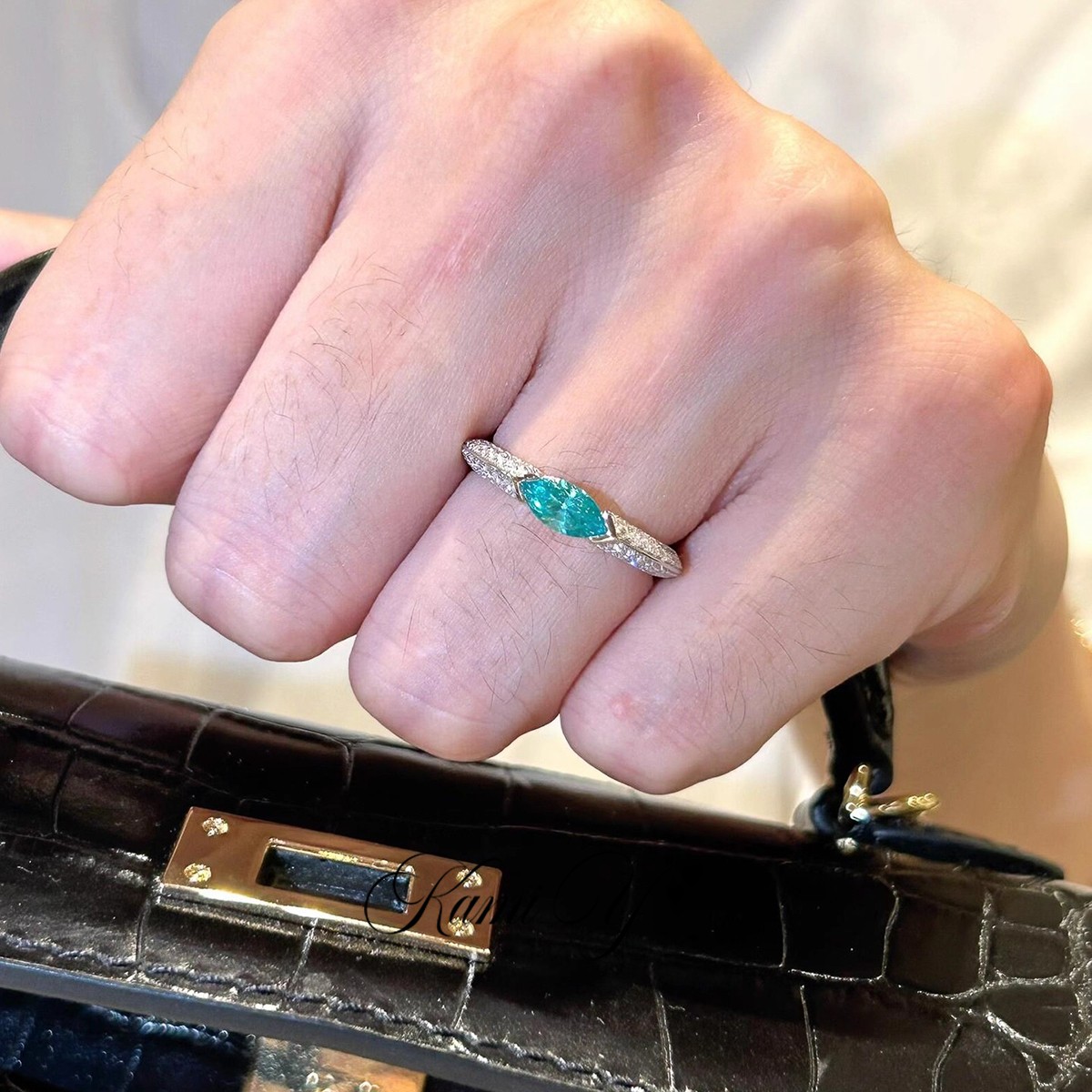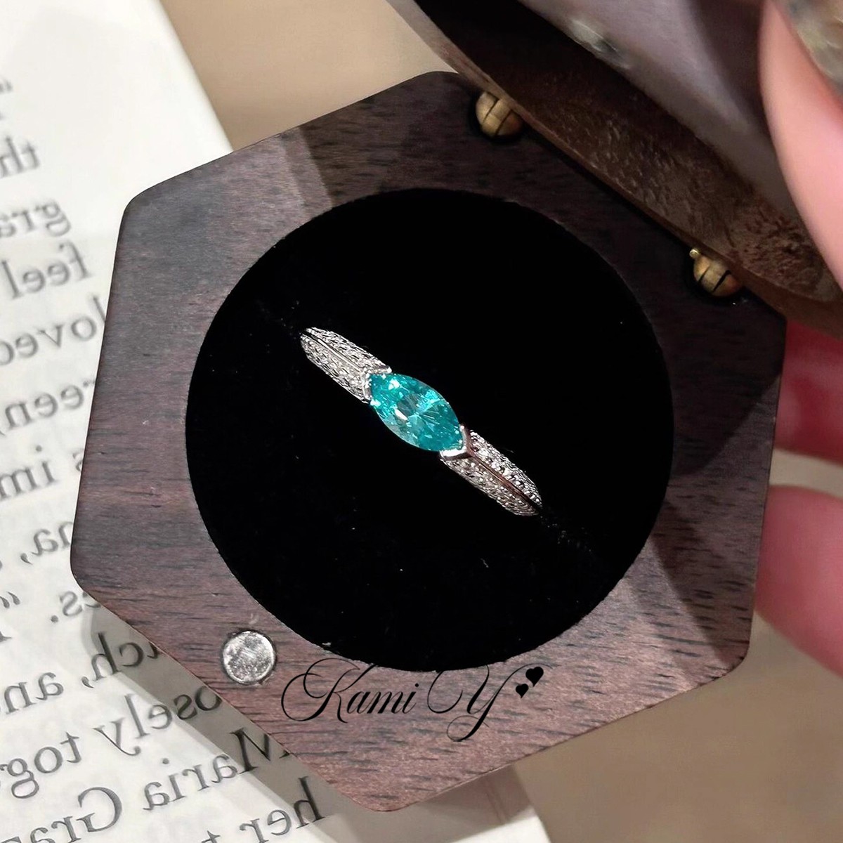 银色托帕马眼蓝色钻开口戒指女小众设计轻奢高级感气质食指戒指环