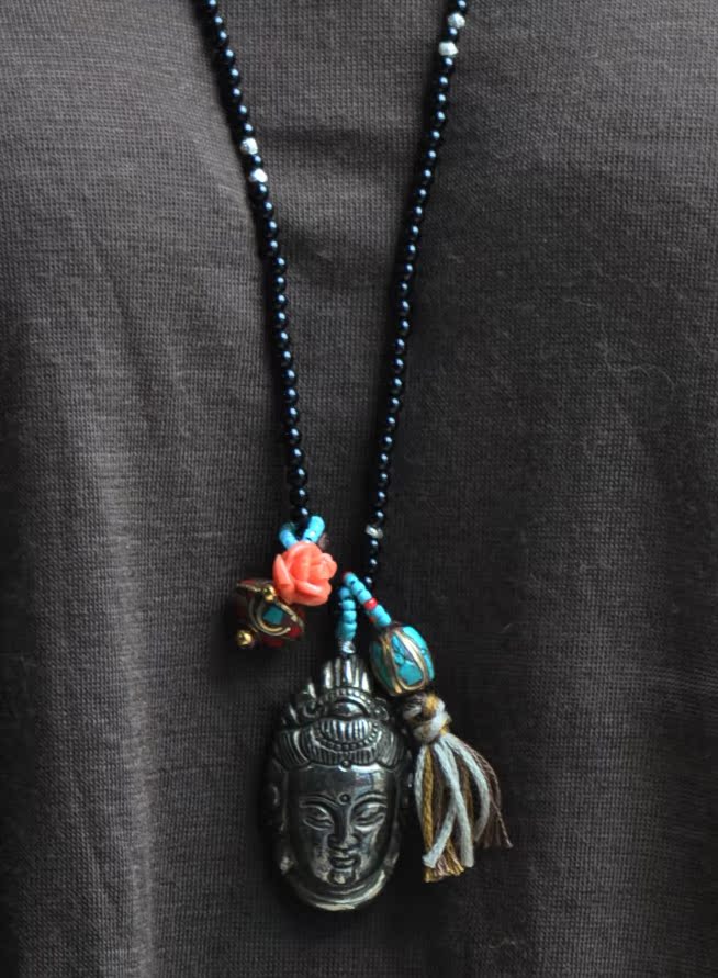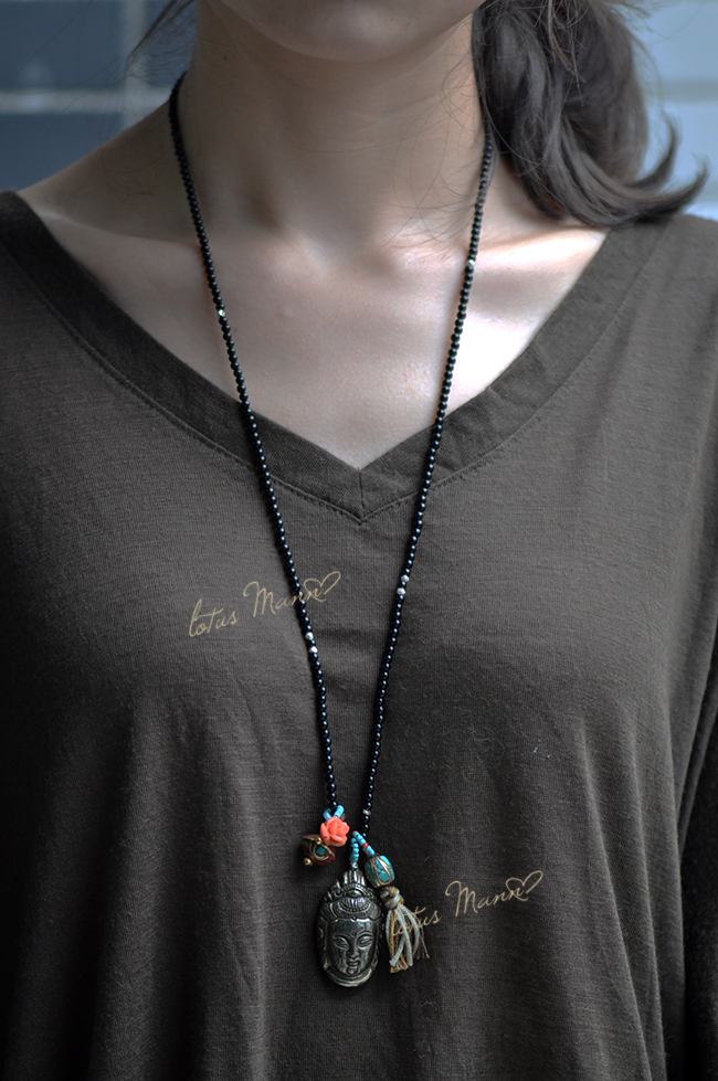 Lotus Mann雕刻佛祖925银黑玛瑙项链