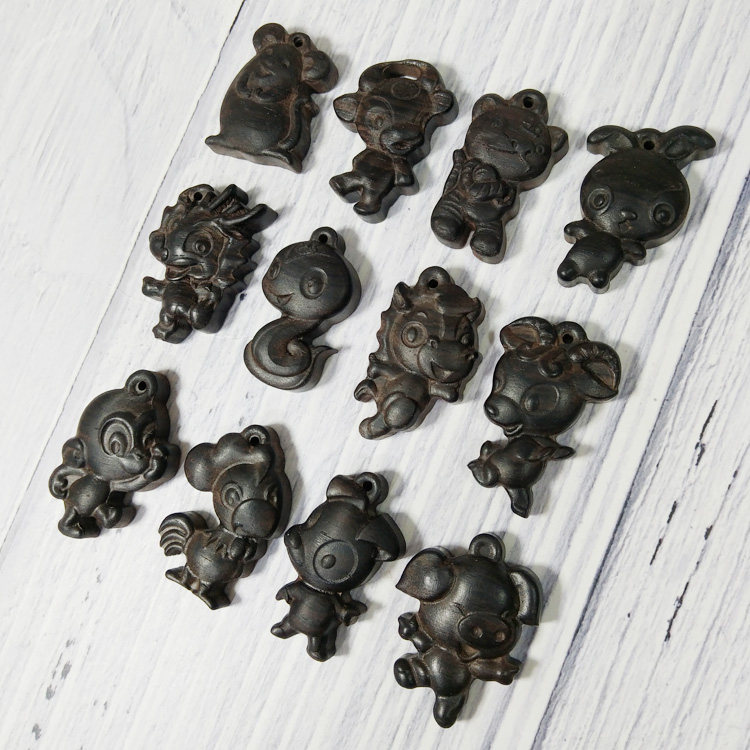 檀象红木黑檀生肖兔猪猴虎龙马项链吊坠 桃木牛鼠男女孩生日礼品