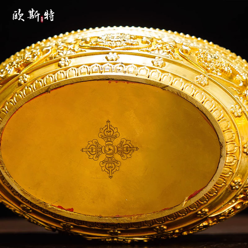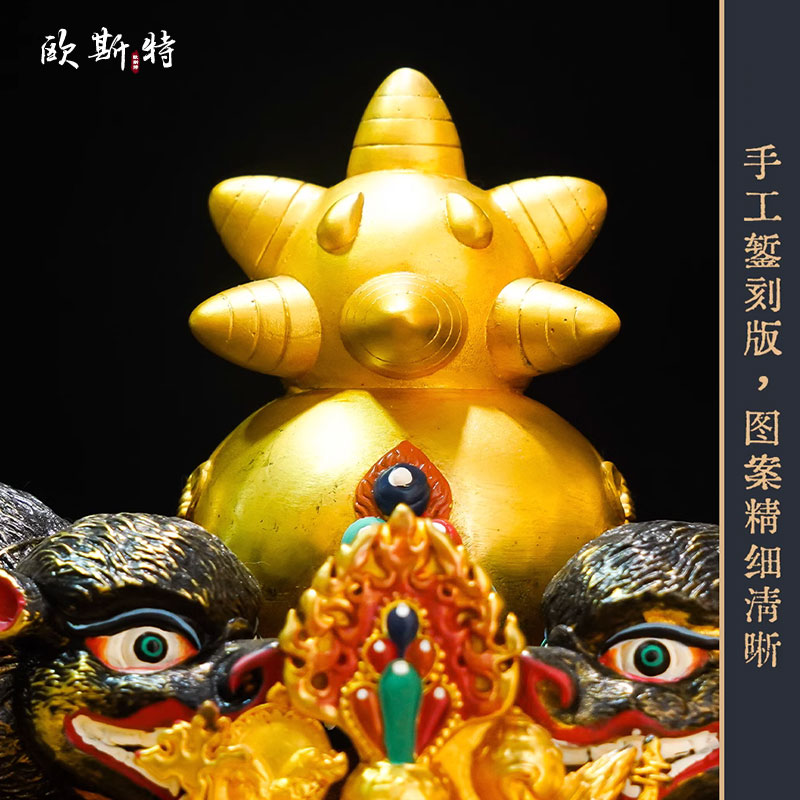 全鎏金鼹鼠吐宝鼠宝瓶八吉祥雕花彩绘百宝座家用桌面供具铜摆件
