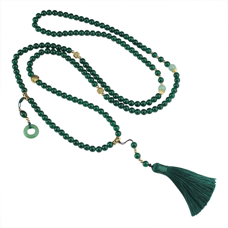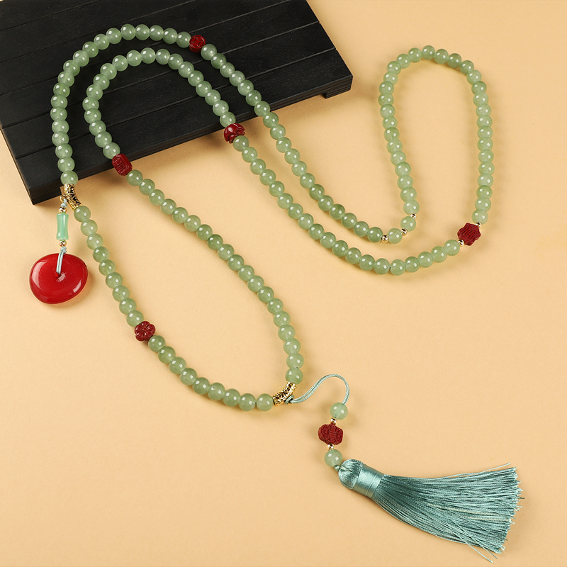 新中式国风108颗串珠流苏项链高级感复古长款斜挎链毛衣链配饰女