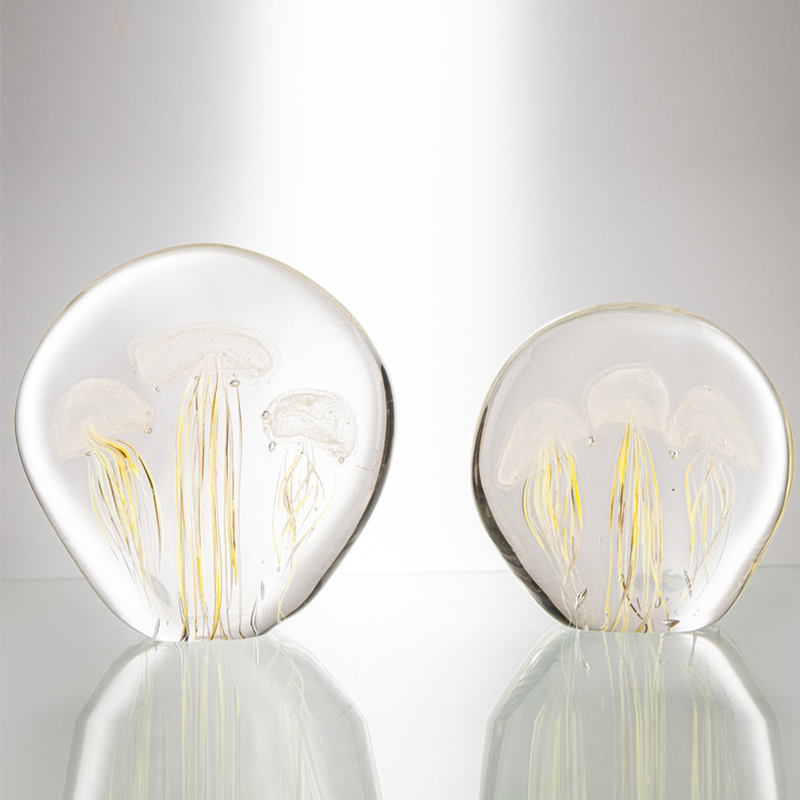 轻奢圆形水母海洋主题水晶玻璃桌面装饰品摆件客厅书柜摆设工艺品