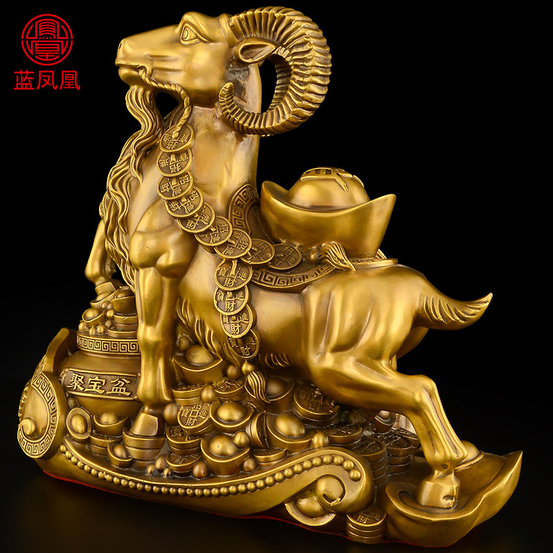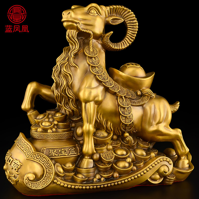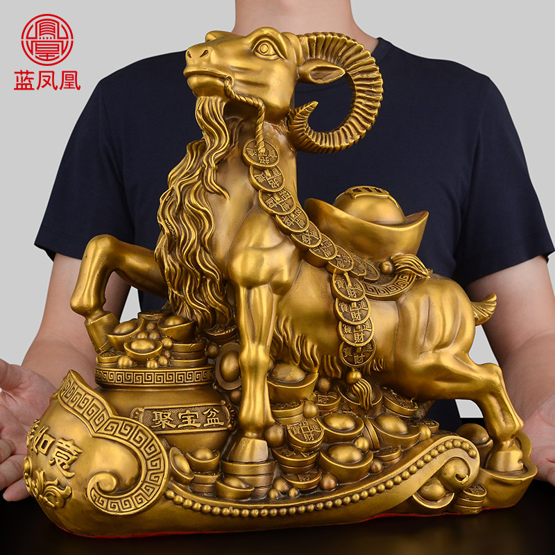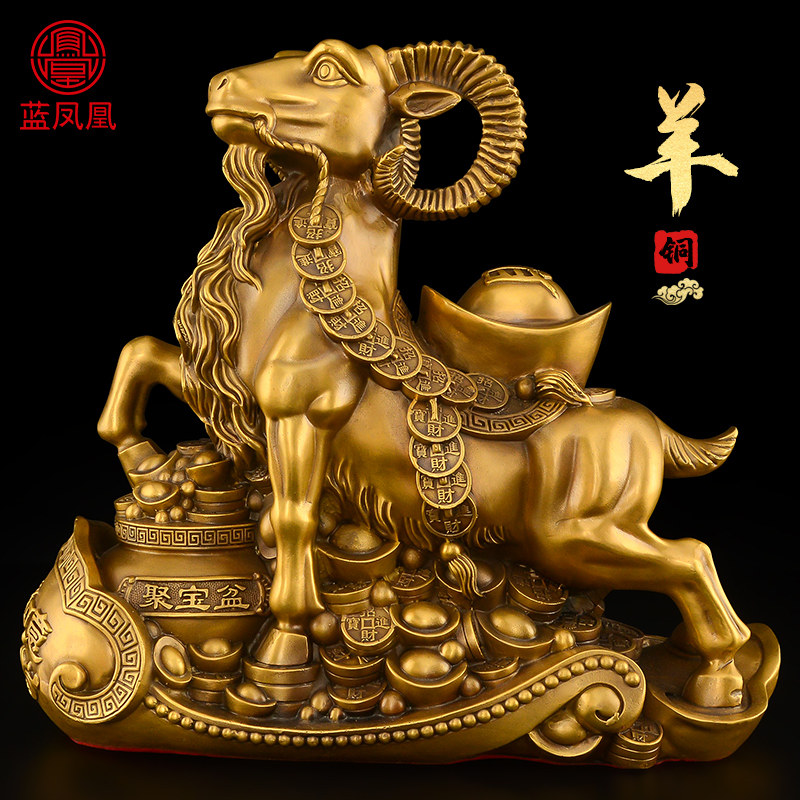 黄铜羊摆件工艺品领头羊办公室客厅中式如意聚宝盆羊吉祥物大号