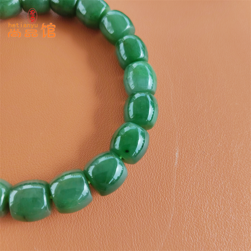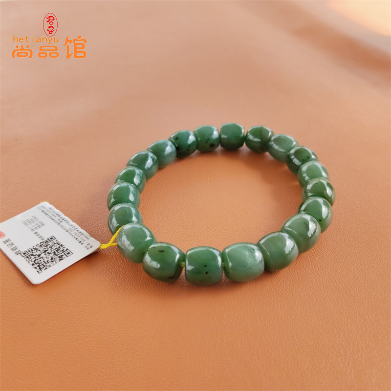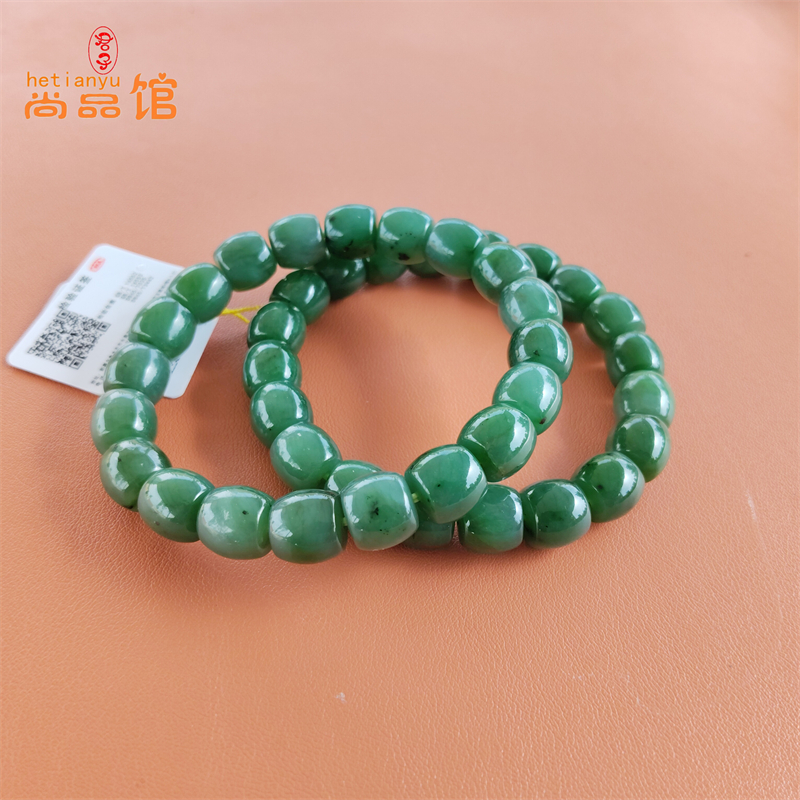 碧玉老型珠直切手串新疆玛纳斯和田玉微带黑点辣绿女款手链