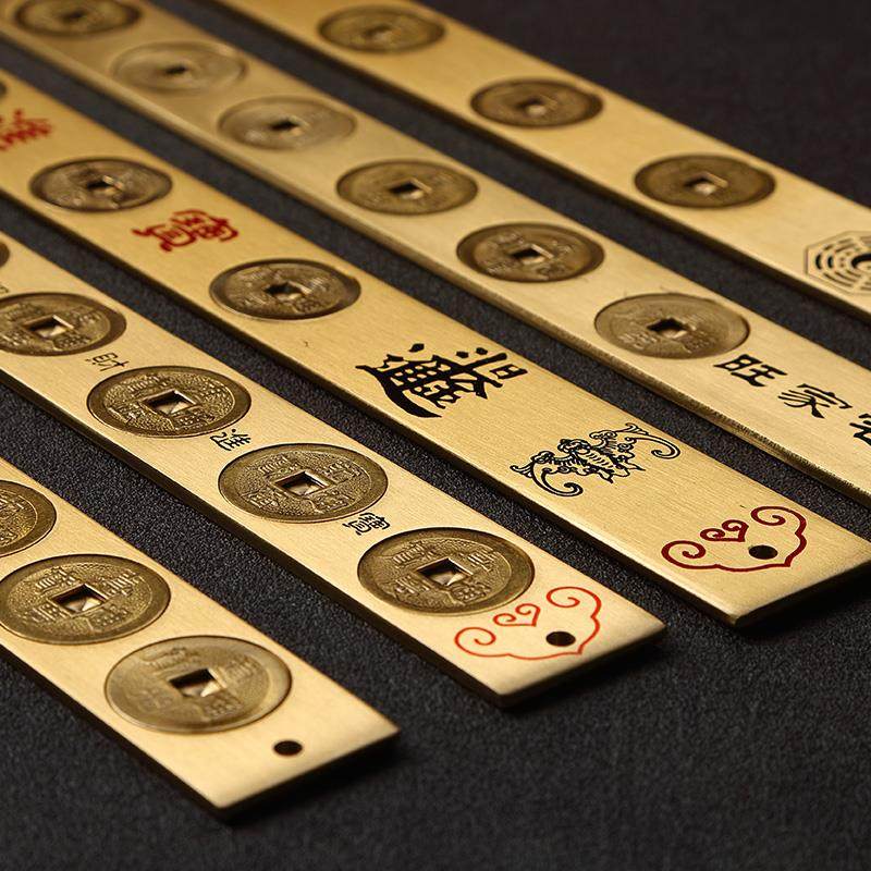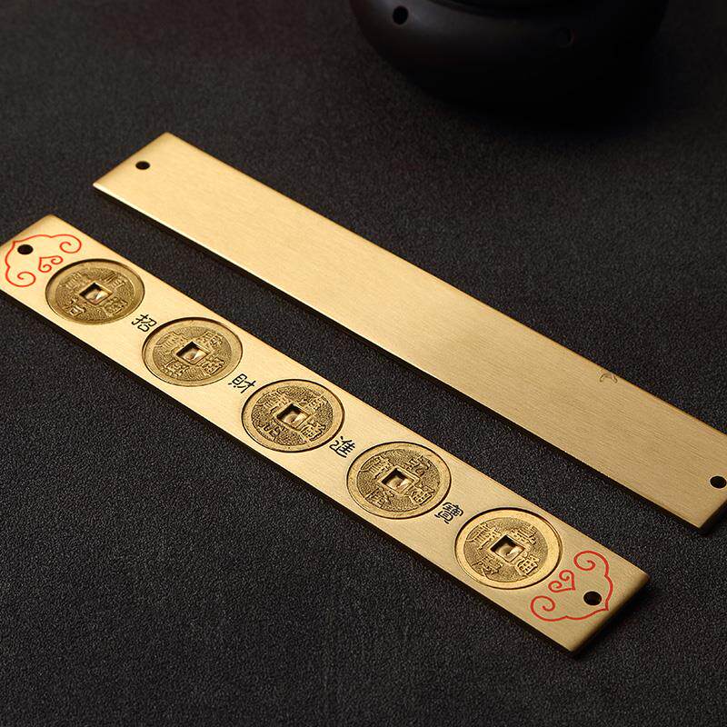 纯黄铜风水五帝尺六帝尺长版十帝尺铜钱尺解门对门压门槛挂件摆件