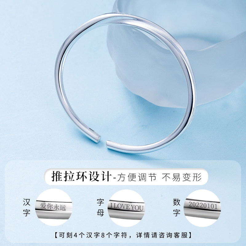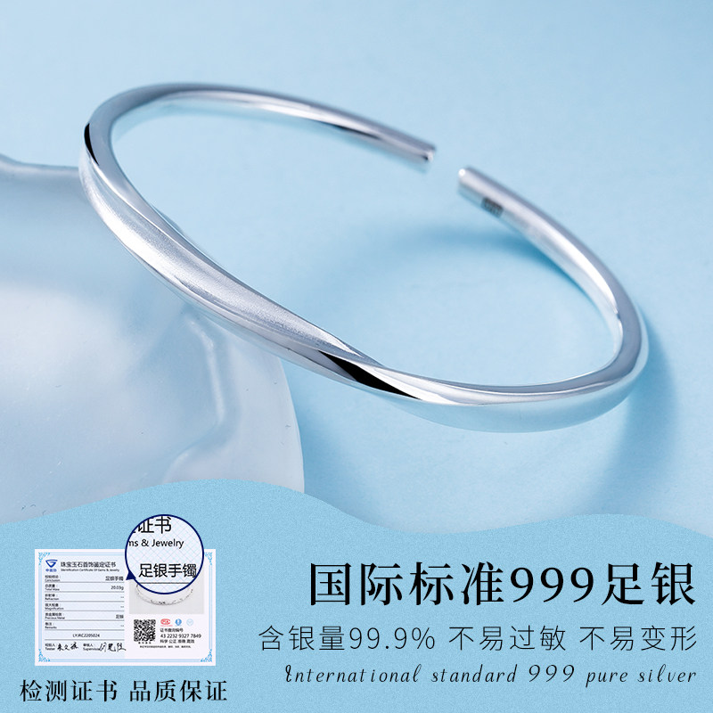 老银匠s999足银手镯莫比乌斯银手镯女年轻款时尚送女友光面纯银镯