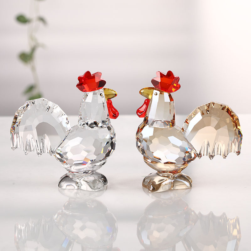 水晶公鸡摆件十二生肖吉祥物办公室桌面装饰品现代简约酒柜小摆件