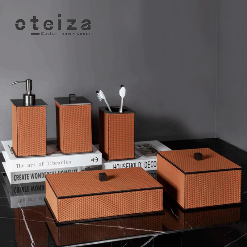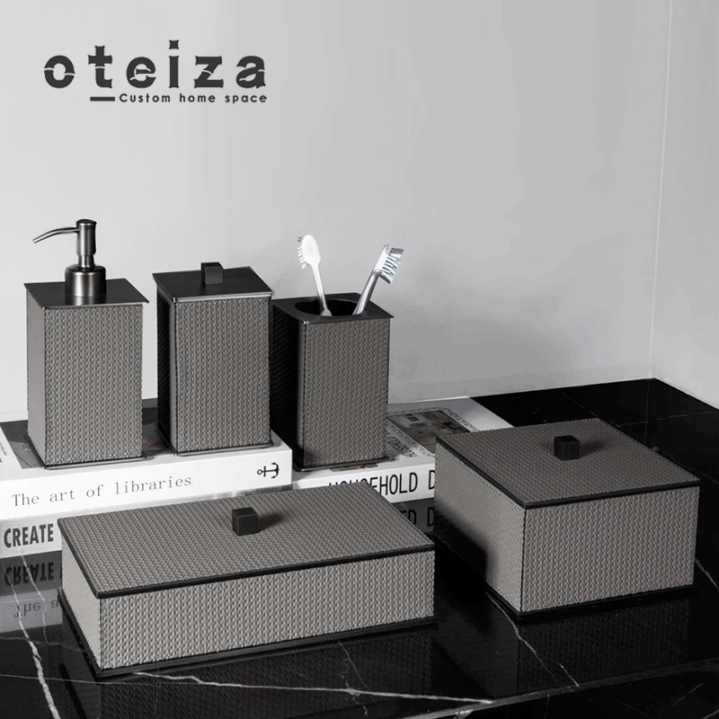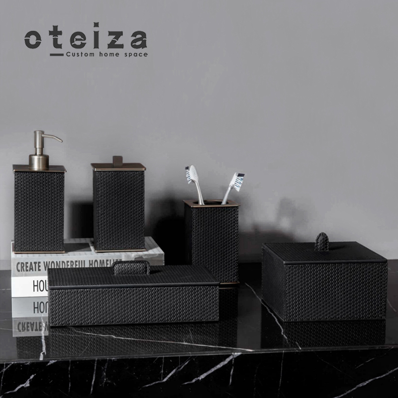 Oteiza轻奢黑白色编织皮卫浴组合样板间浴室卫生间收纳盒摆件装饰