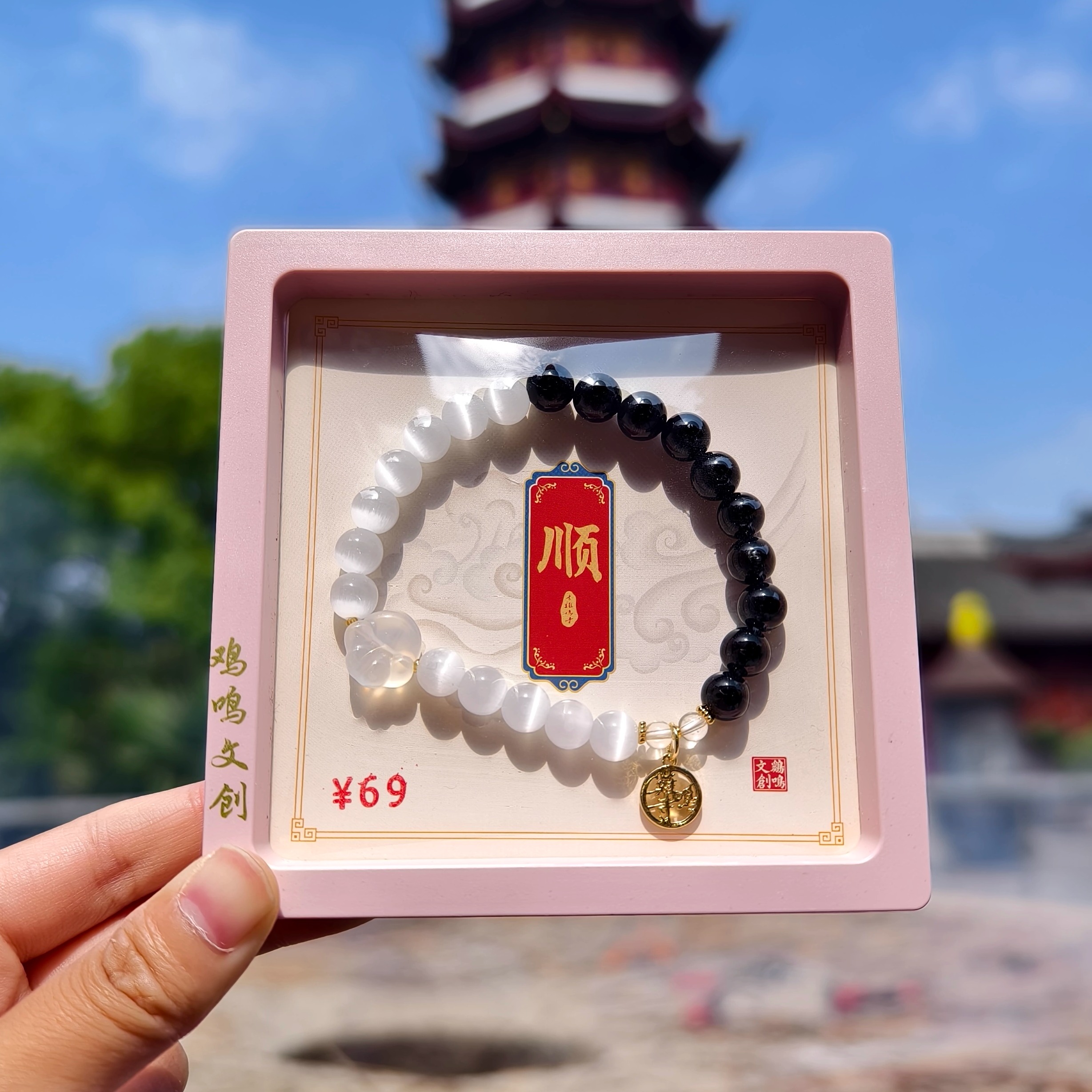 南京鸡鸣代寄情侣双拼顺粉色女款手串黑色男款手串手链文创礼品