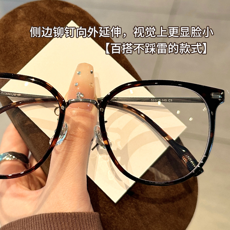 超轻钛架韩系玳瑁色圆框眼镜近视女可配度数素颜神器眼睛架男豹纹