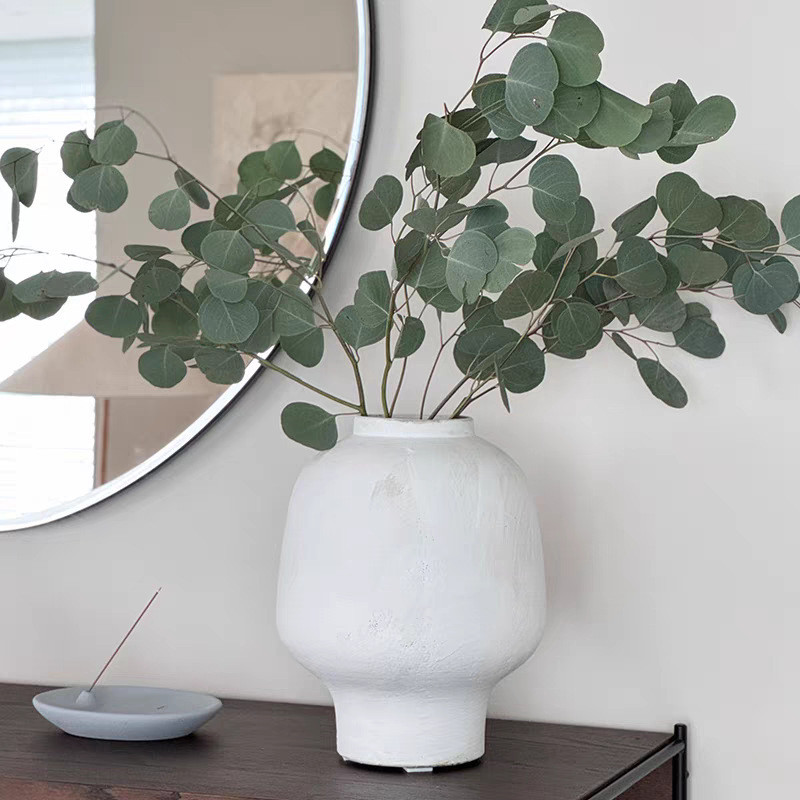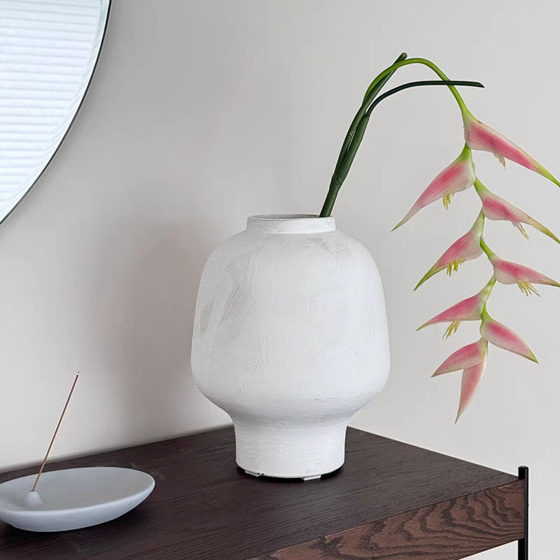 可水培陶瓷花瓶白色诧寂风复古粗陶哑光家居摆件玄关客厅中古花器