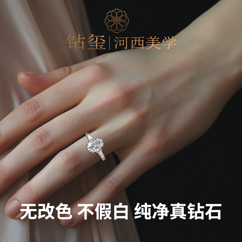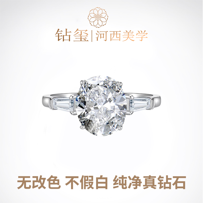 【培育】钻玺 三石 风格简约椭圆形鸽子蛋钻石三生石戒指3克拉