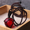 天然莫尔达维红陨石吊坠手工编织网兜款宇宙矿物高频圆珠项坠挂件