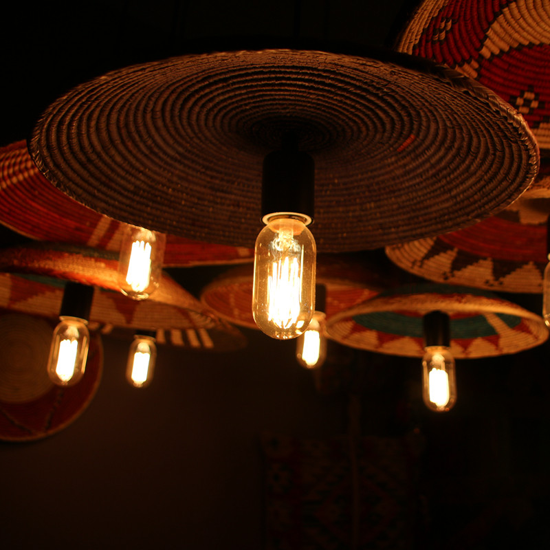 咖啡厅书店工业风装修竹吊灯竹灯罩竹编篮子灯斗笠灯罩竹灯笼