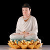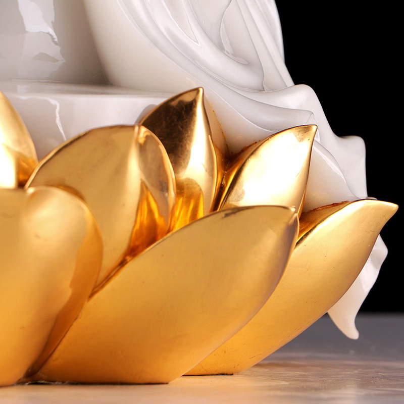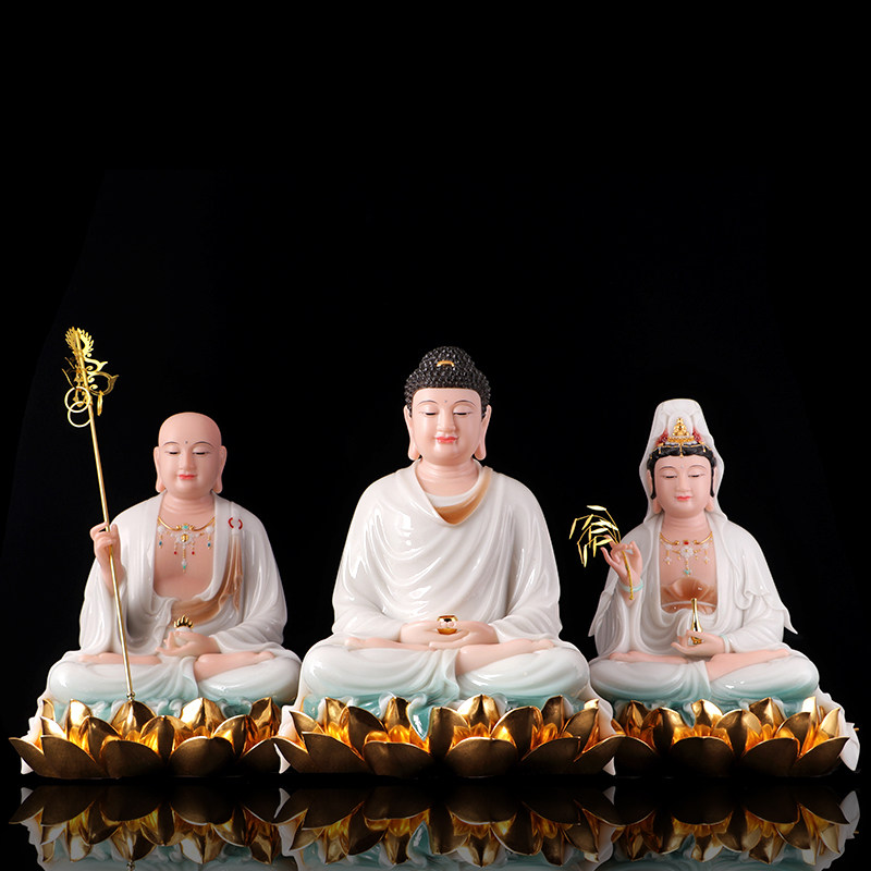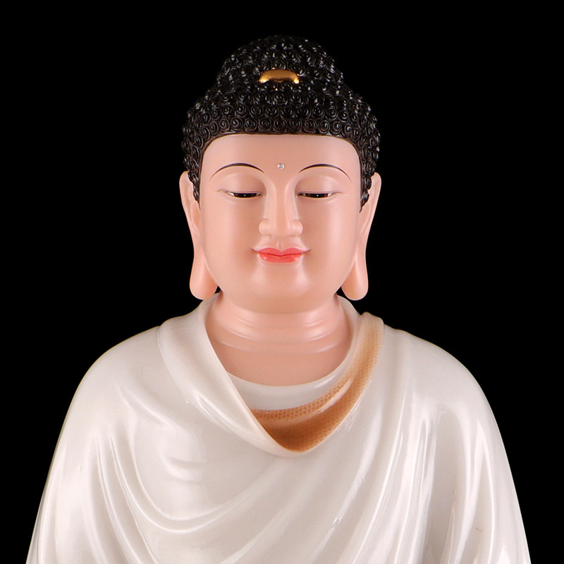 汉白玉镶金释迦牟尼佛像家用供奉石雕珐琅彩镶金阿弥陀佛坐像摆件