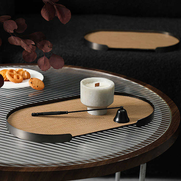 简约现代创意金属皮革托盘样板间民宿家居客厅茶几桌面收纳盘摆件