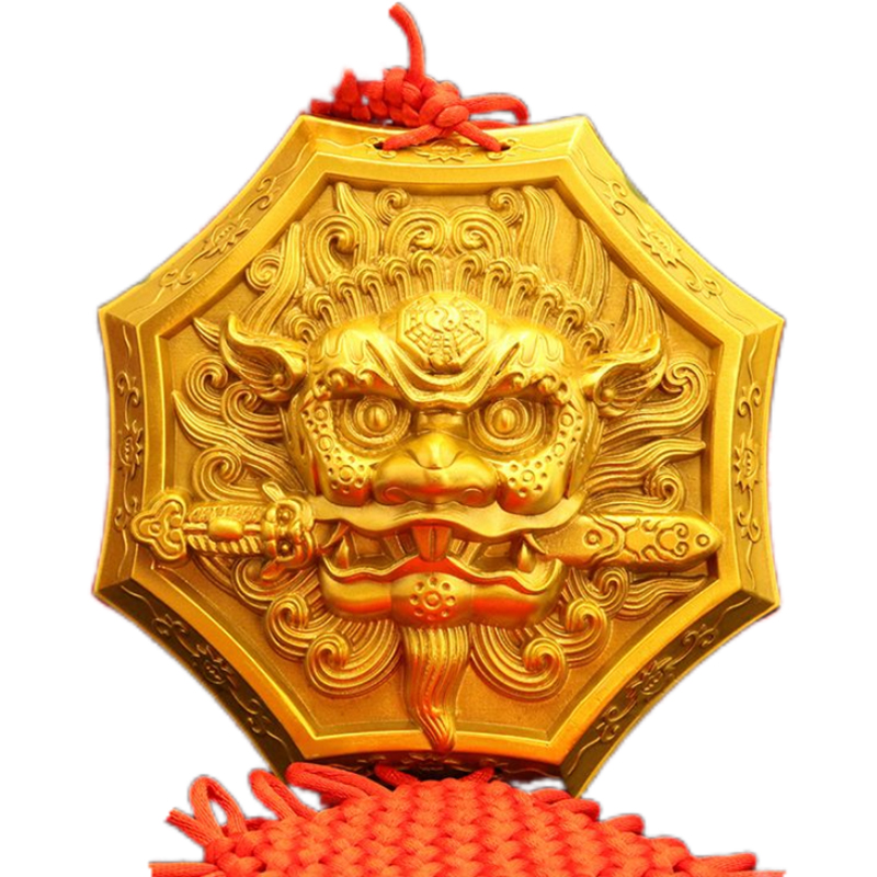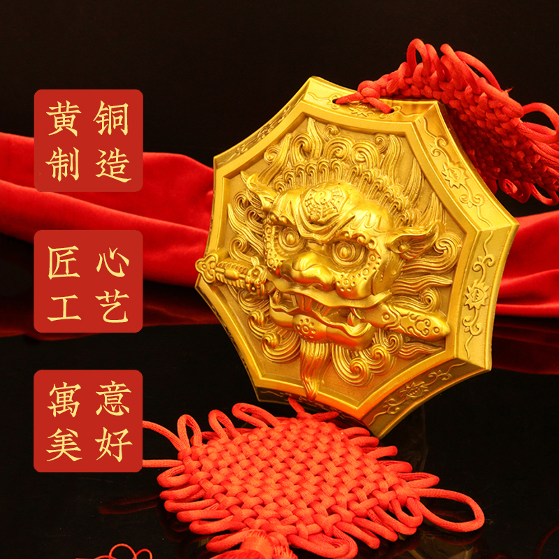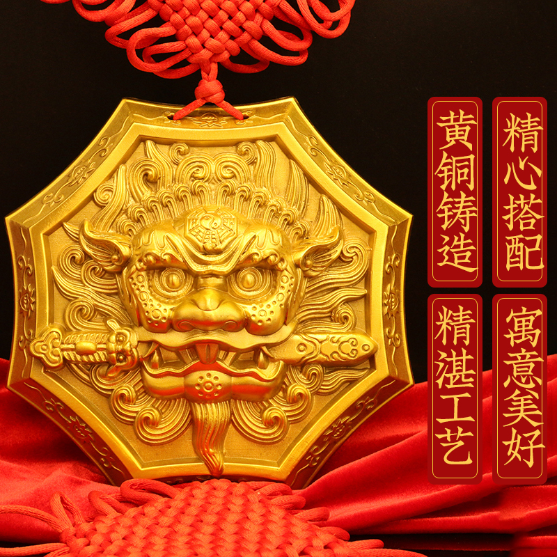 铜狮咬剑挂件黄铜兽头睚眦吞口剑客厅门对门厕所挂饰八角狮头装饰