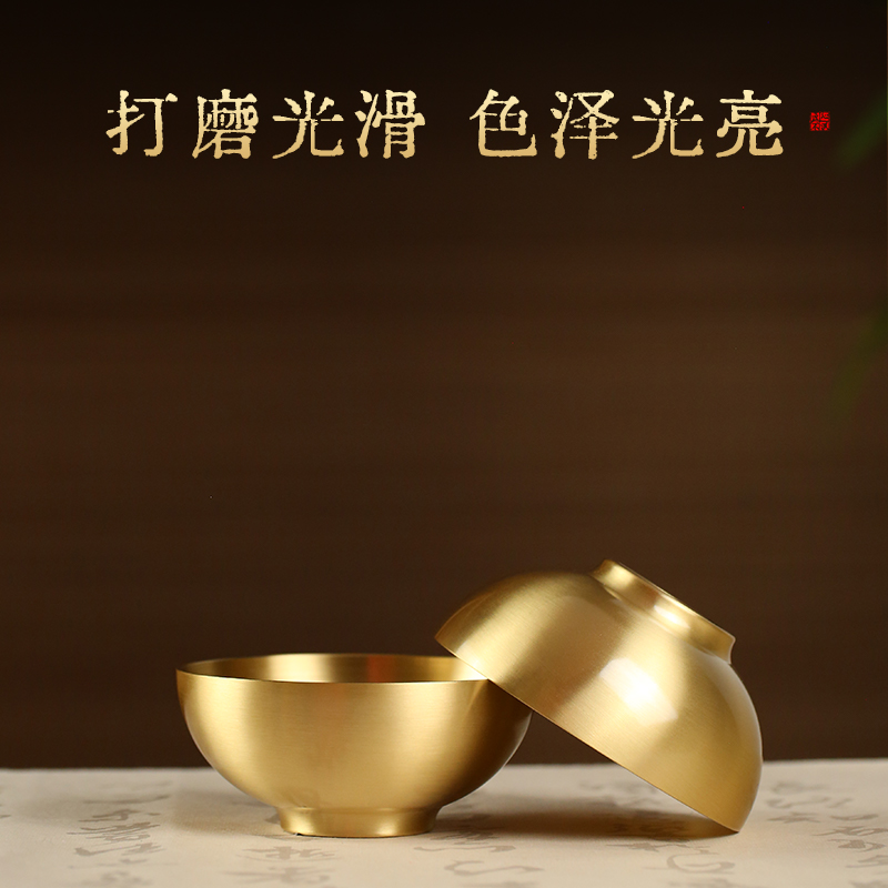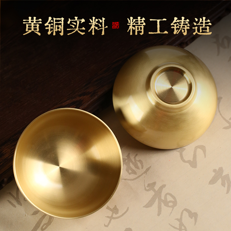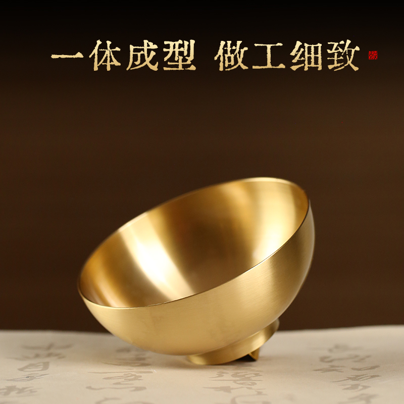供水碗光面金饭碗黄铜家用佛前供佛奉小铜碗家居装饰供水杯大小号
