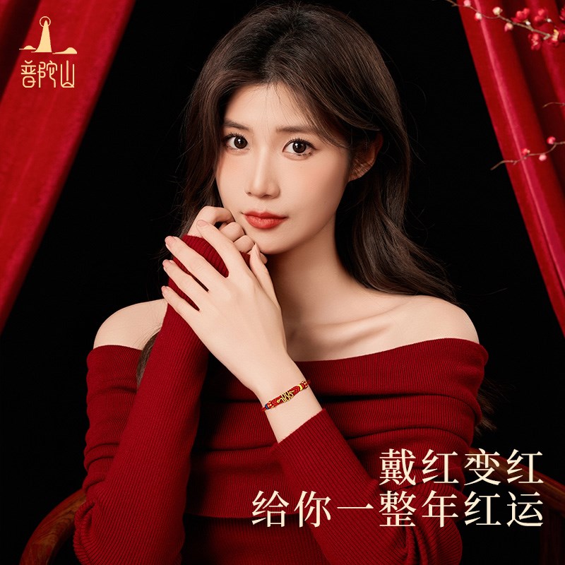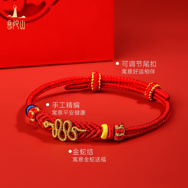 普陀山2025蛇年本命年红绳亲子款纯手工编织手绳平安蛇来运运手链