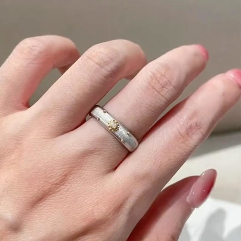 进口「巴黎念曲」复古拉丝银色戒指意大利宫廷风镶钻尾戒拉花开口