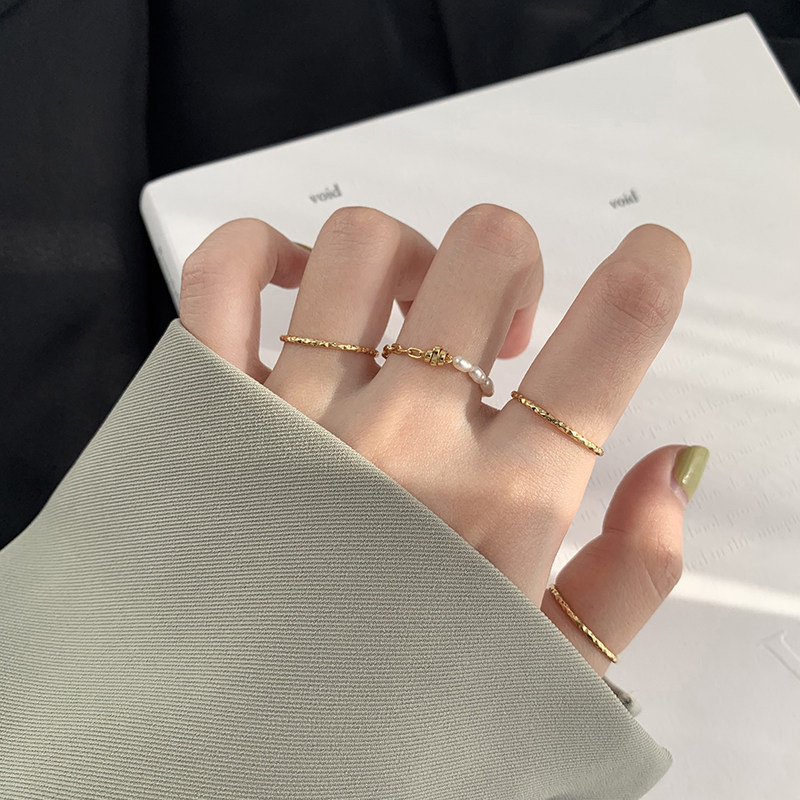 14k镀金韩国戒指细圈气质时尚个性叠戴食指开口戒指ins女小众设计