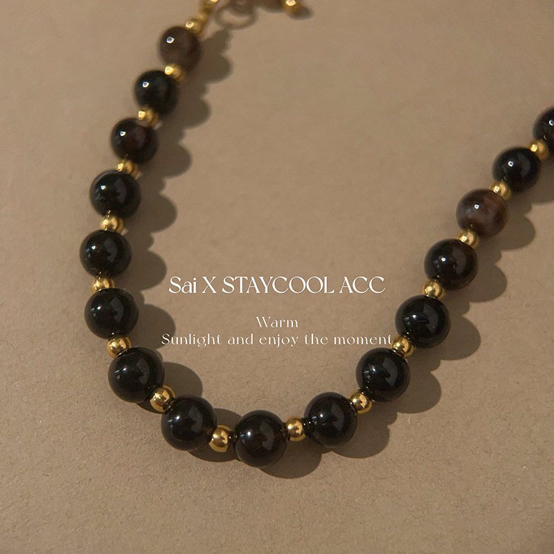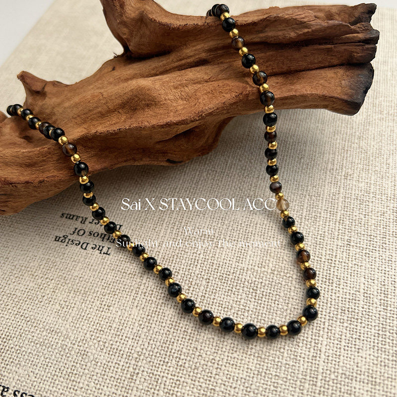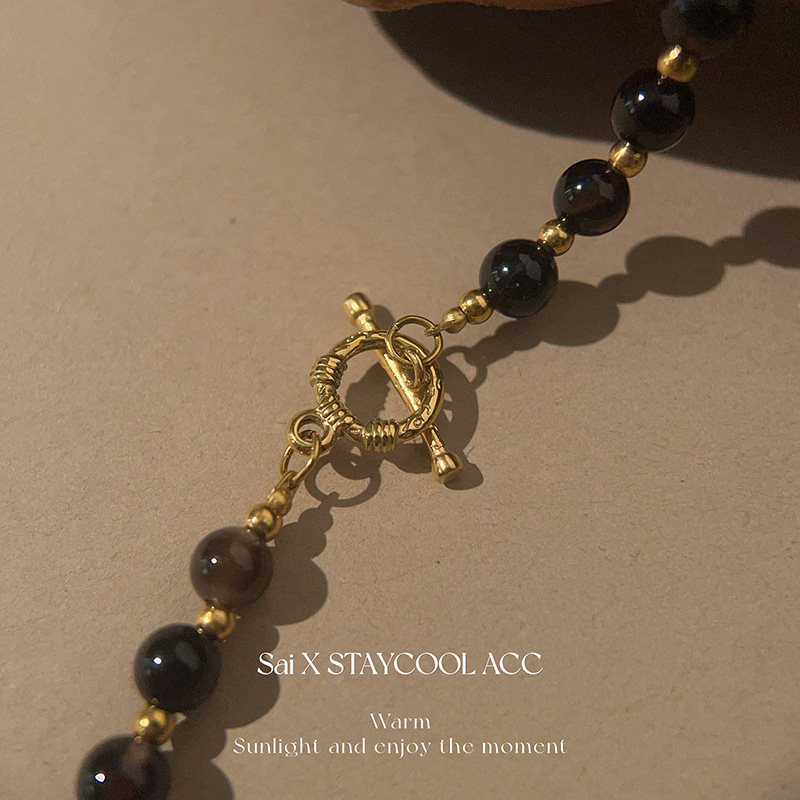 复古宫廷风黑玛瑙串珠项链女士手工串珠高级感锁骨链OT扣轻奢