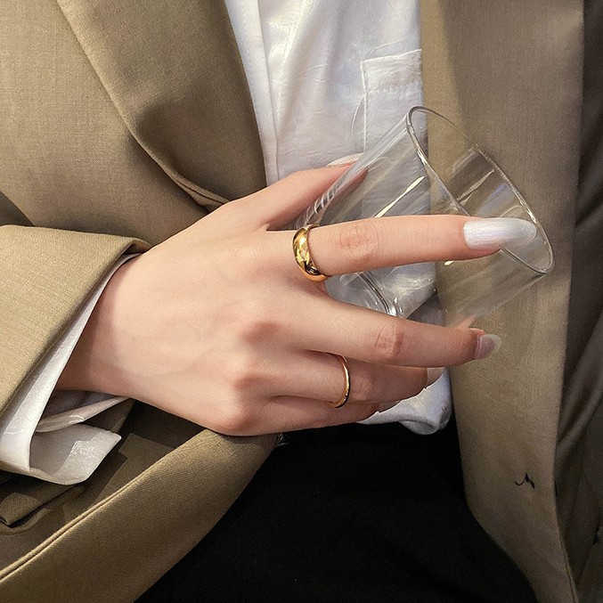 特大号戒指男大码粗手食指中指拇指黄金色银色胖简单光面弧面钛钢