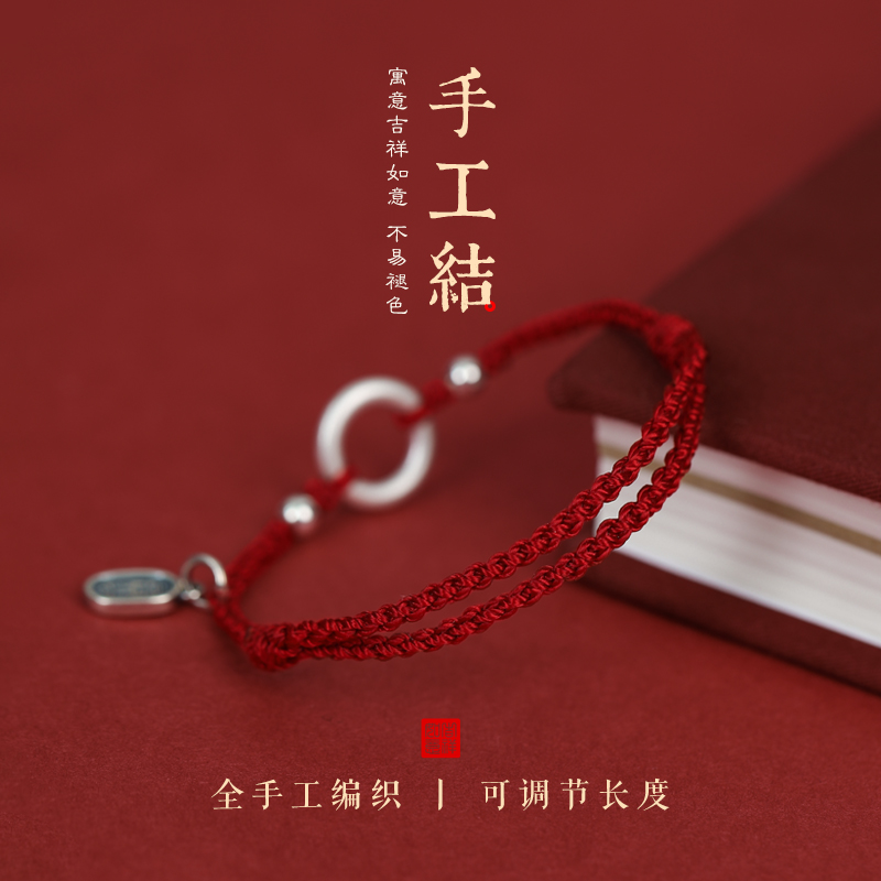 2025蛇年纯银平安扣红绳手链女本命年转运珠平安编织绳红色手绳男