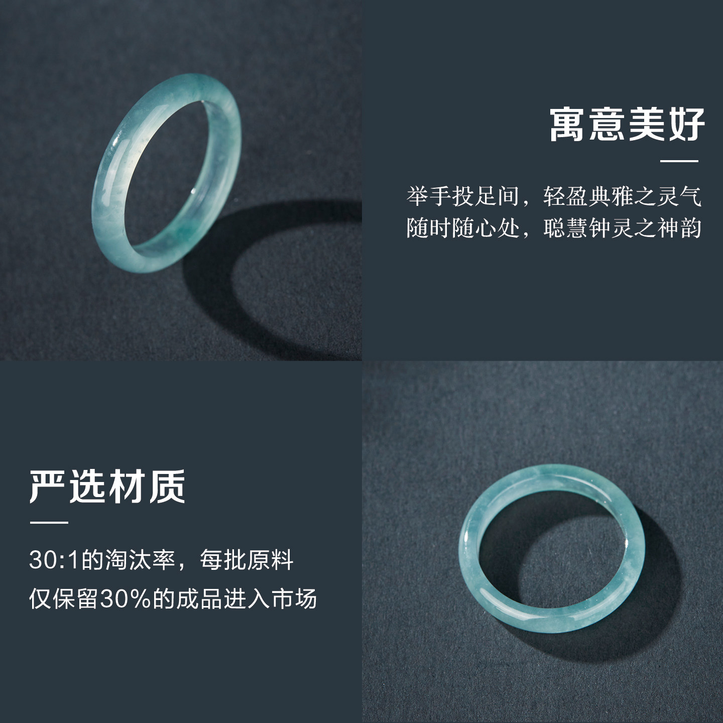 七彩云南翡翠戒指蓝水冰种指环玉石细尾戒女款玉戒素圈男生日礼物