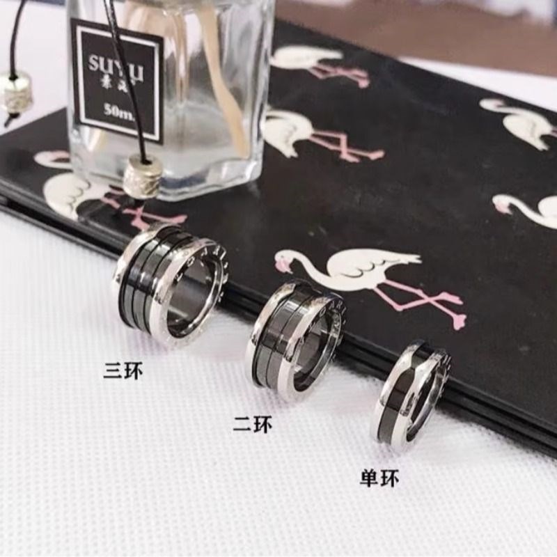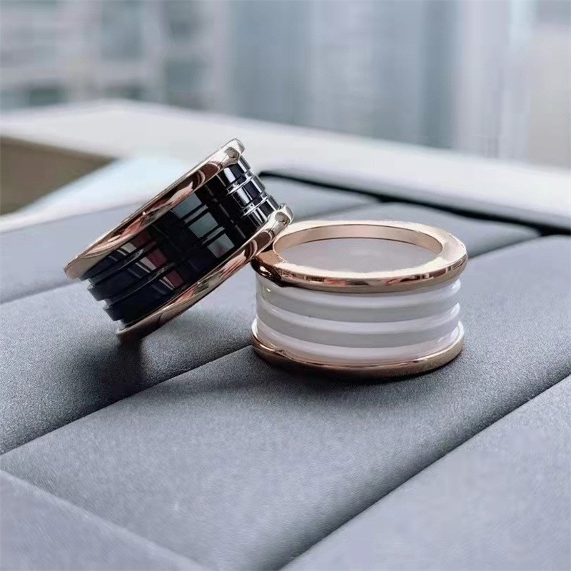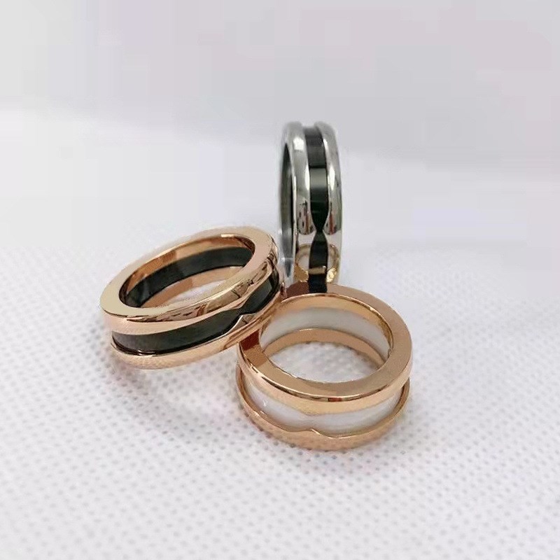 时尚黑白陶瓷戒j指男女情侣对戒经典窄女戒指个性潮流玫瑰金弹簧