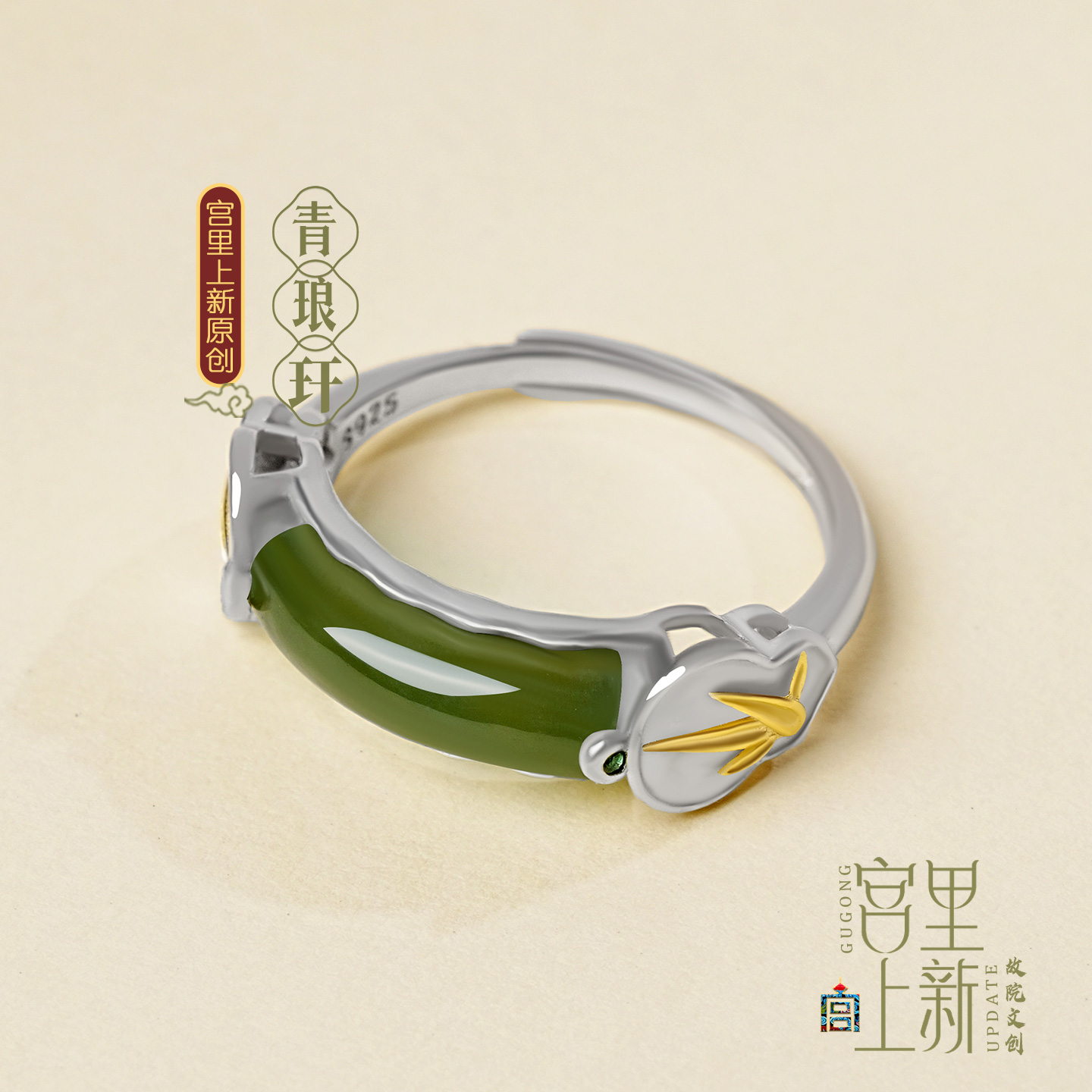 宫里上新和田玉戒指女天然碧玉绿色玉石指环纯银生日礼物送妈妈