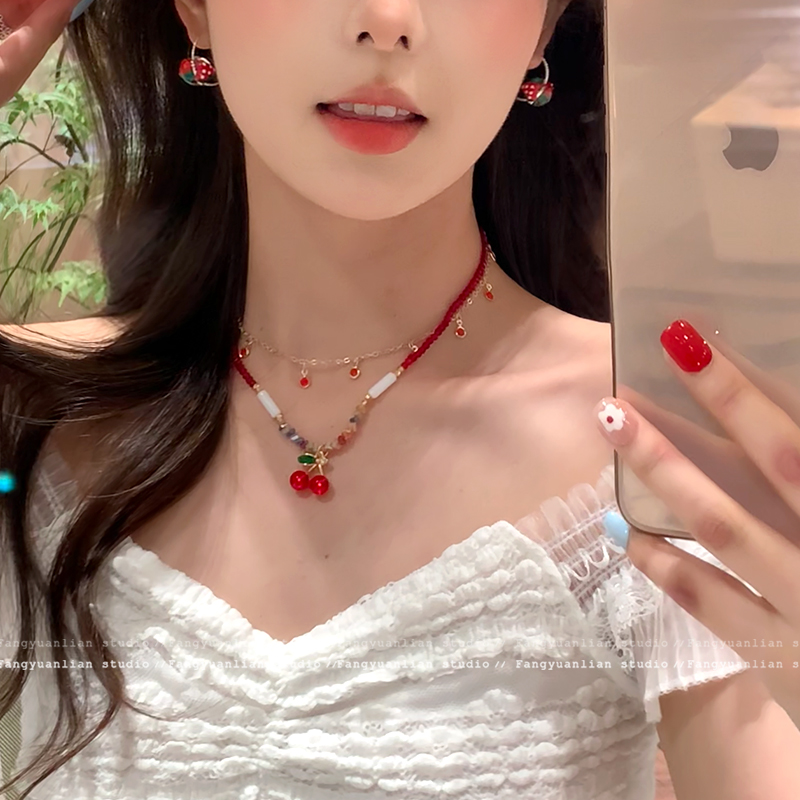 樱桃派对 夏日串珠樱桃吊坠项链女小众设计感锁骨链甜美叠戴颈链