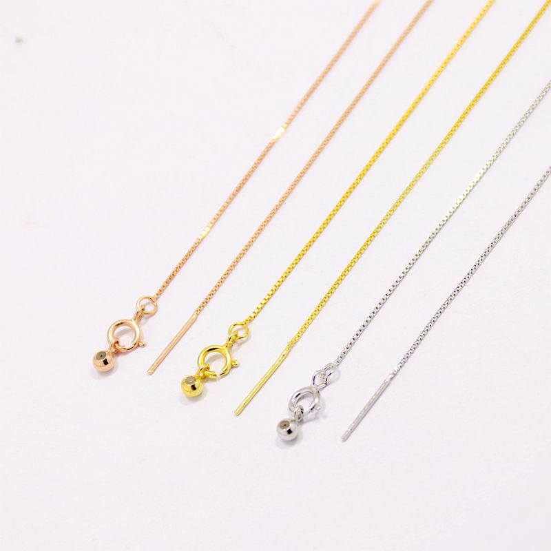 S925纯银项链盒子链穿珠子定位diy针式硅胶调节球带针可调节45CM