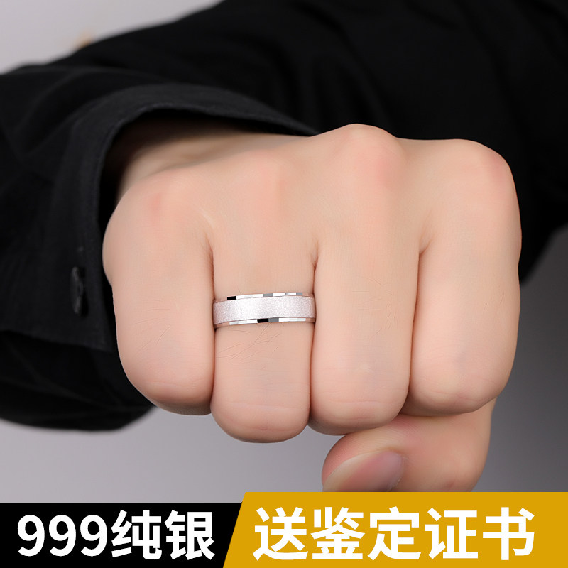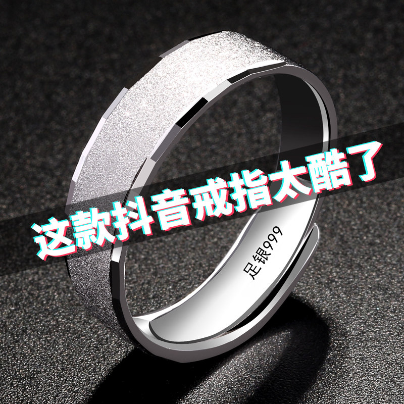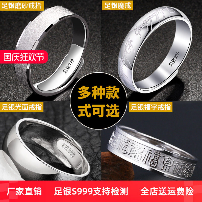S999足银戒指男士闭口纯银指环学生单身霸气开口个性潮人尾戒女