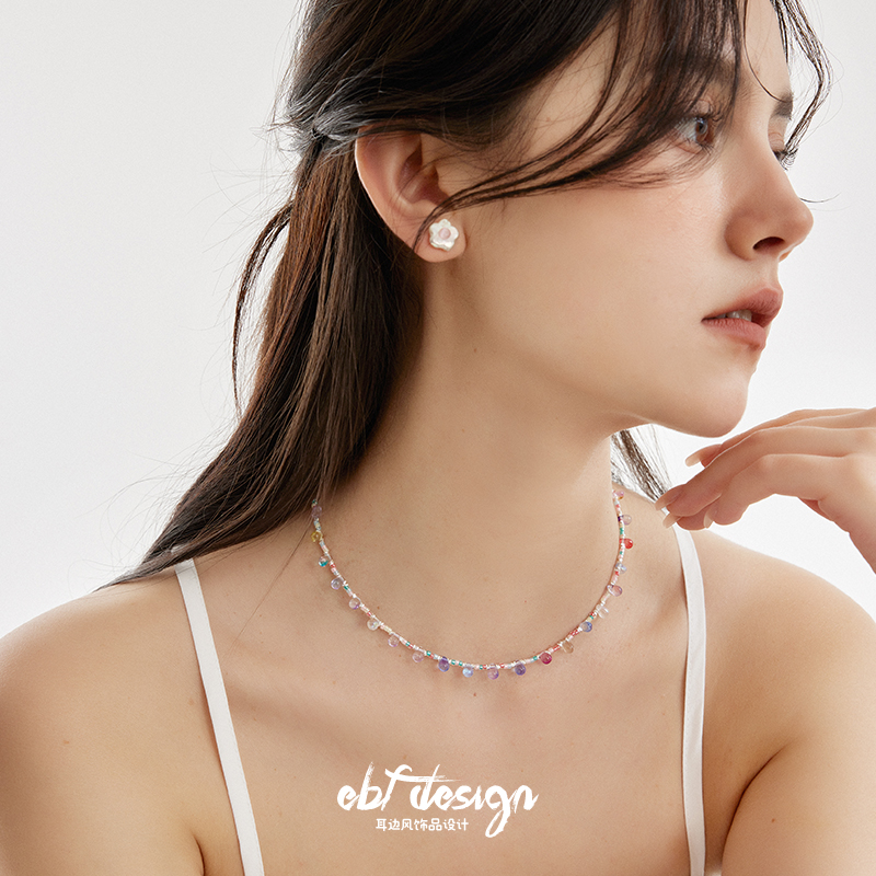 EBFWIND斑斓夏忆 夏日ins风童趣设计彩色水滴串珠夏天项链锁骨链