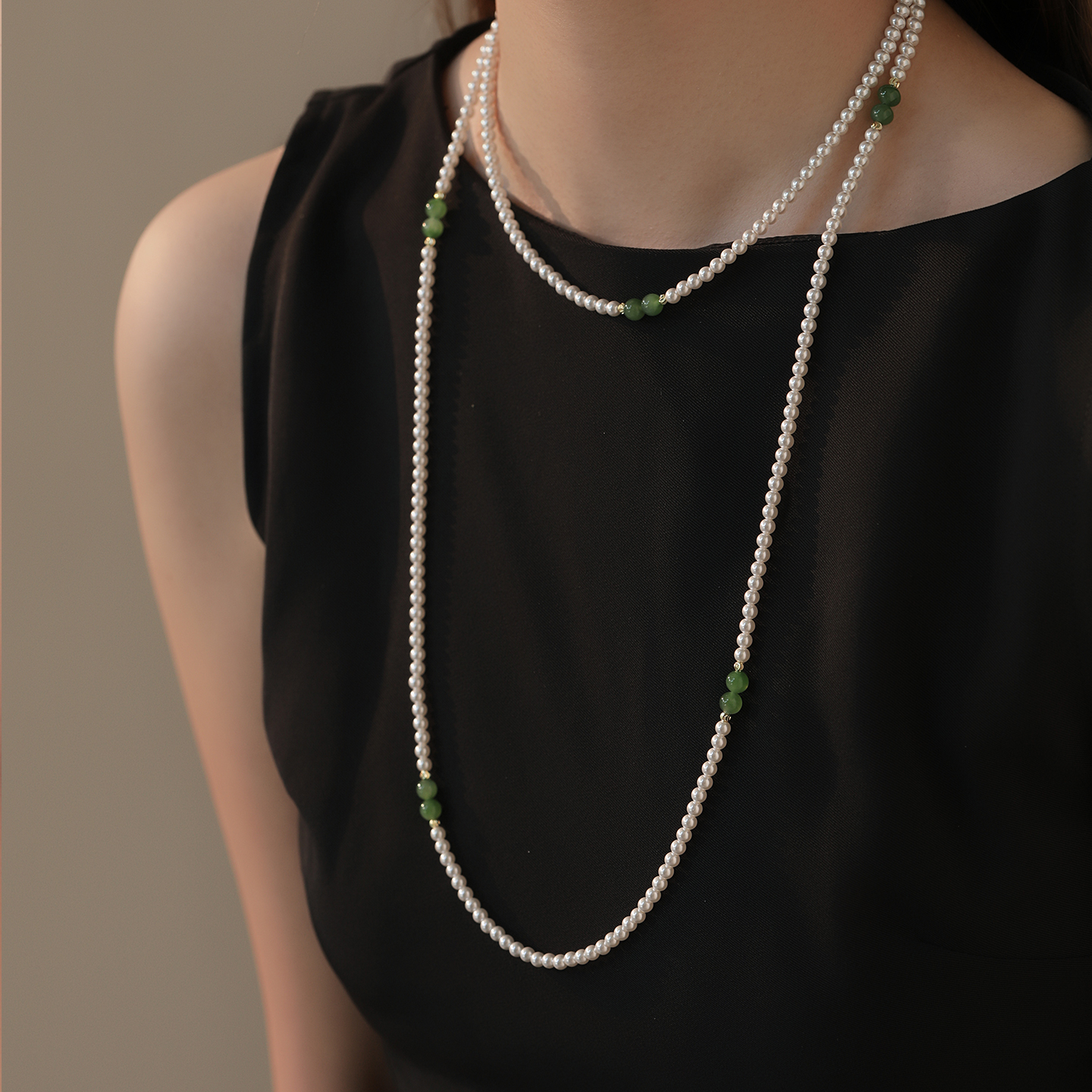 SHIWU新中式和田玉珍珠项链长款毛衣链秋冬双层叠戴颈链2025新款