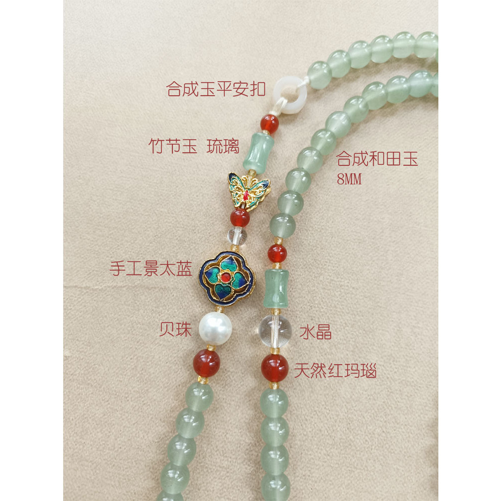民族复古和田玉晴水绿韩版珍珠毛衣链长款名媛婚纱旗袍项链配饰女