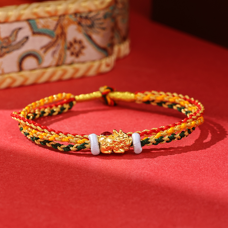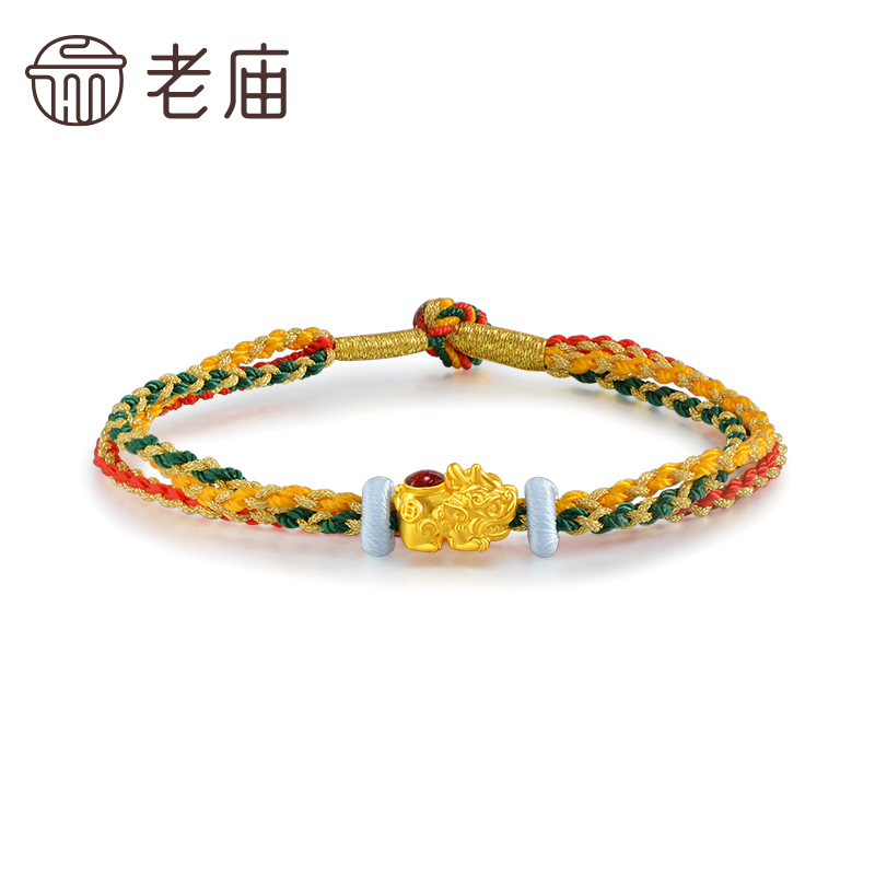 老庙黄金足金醒狮手绳5D工艺多彩编织手绳大吉醒狮寓意喜事连连